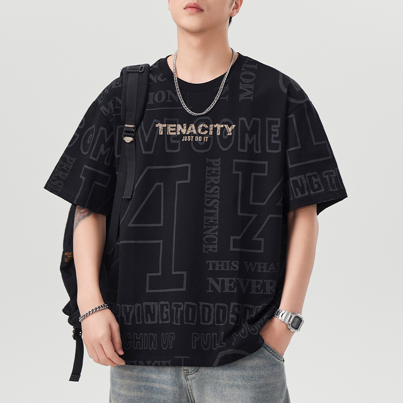 潮牌满印短袖t恤男士2025年春夏季新款宽松大码休闲圆领半袖体恤