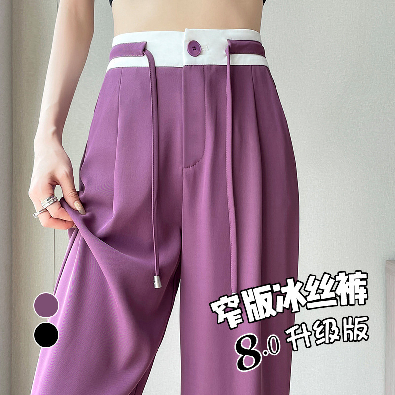 冰丝西装裤女夏季薄款高腰垂感窄版阔腿裤小个子显瘦休闲直筒裤子
