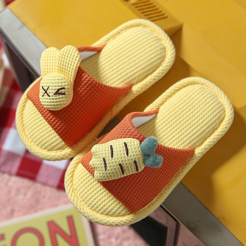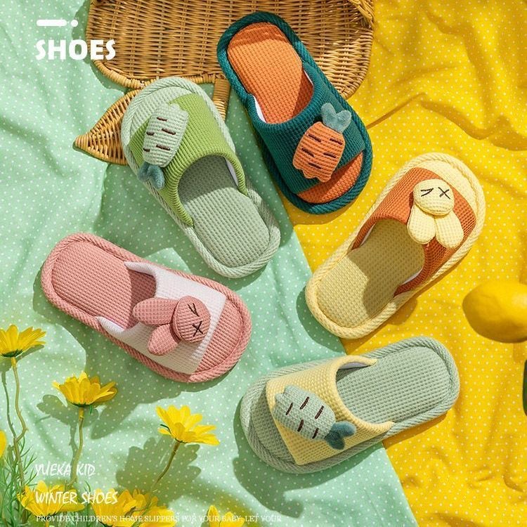 儿童亚麻拖鞋女童室内家居日式防滑女孩静音男童透气棉麻拖鞋四季