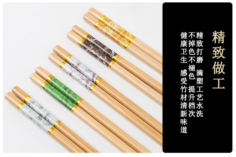 楠竹筷子大理石纹高级不发霉耐高温防滑防滚落家用天然木筷子餐具