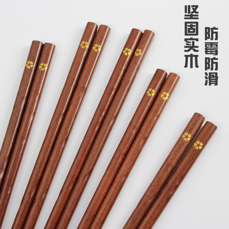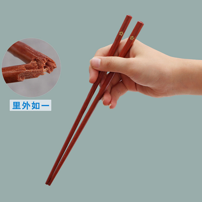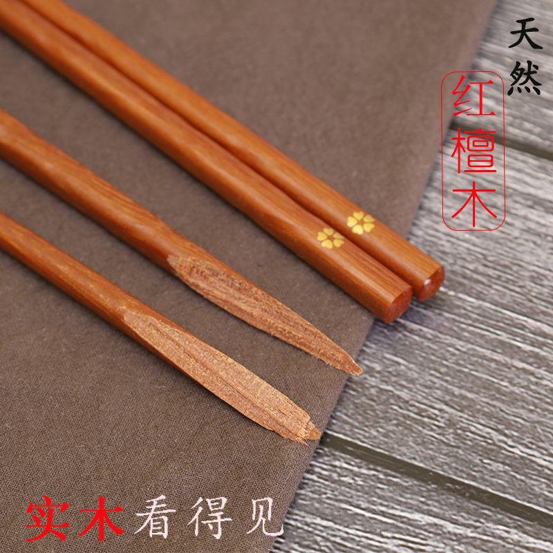 天然红檀木筷子家用高档防霉防滑实木中式原木家庭装筷子