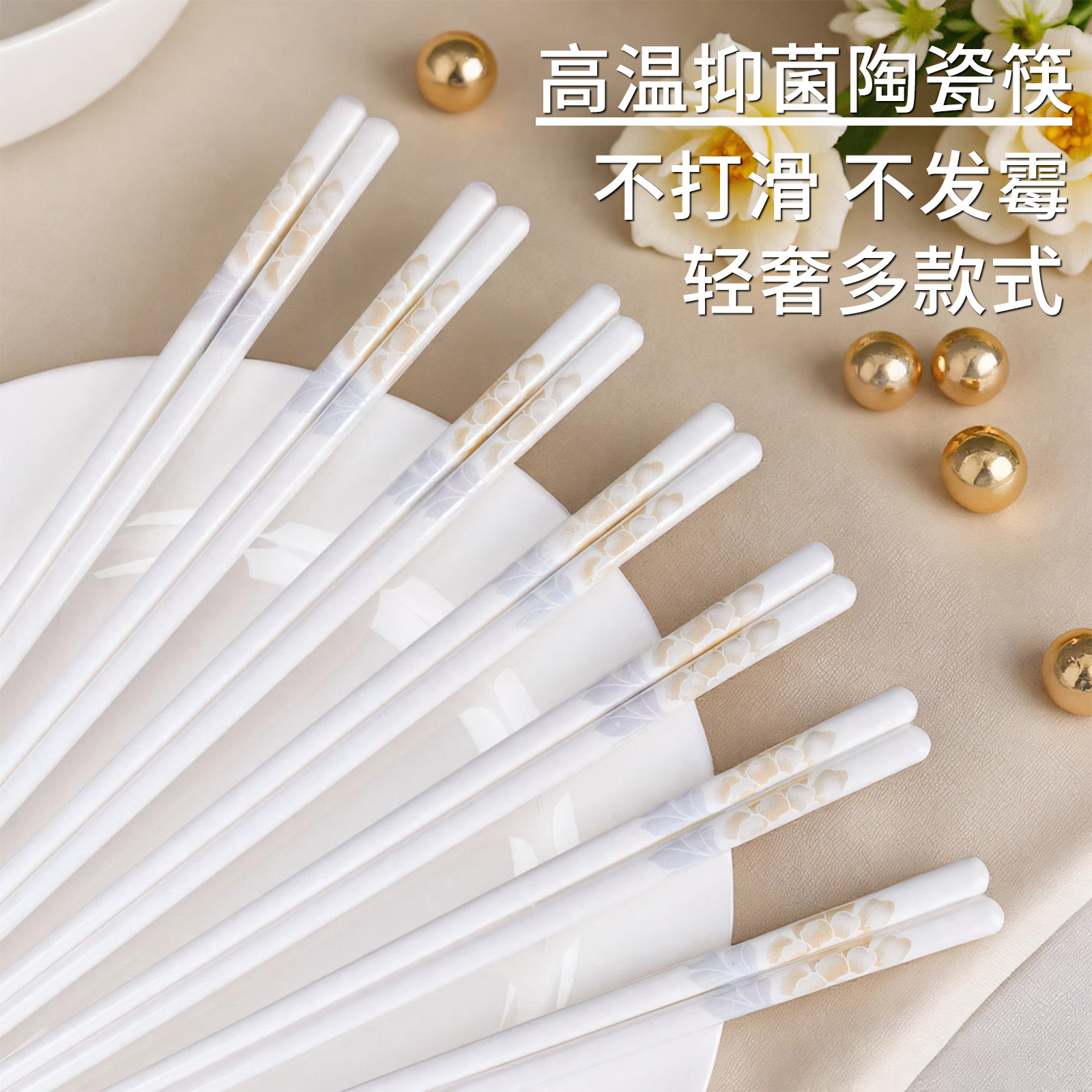 陶瓷筷子家庭装餐具不发霉不变形骨瓷家用高档防滑耐高温