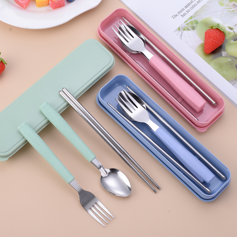 不锈钢便携式餐具套装户外旅行学生上班族勺子叉子筷子三件套