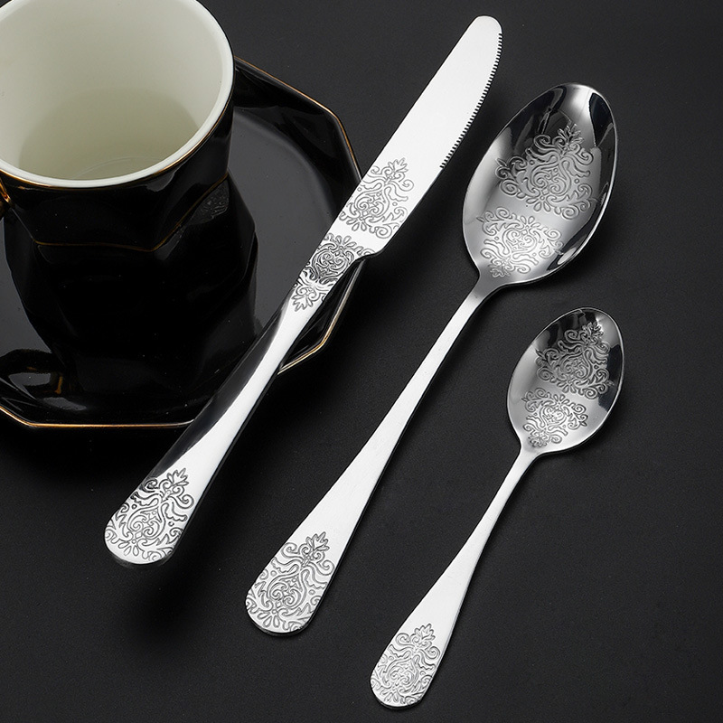 浮雕麦穗410不锈钢刀叉勺五件套酒牛排刀叉西餐具套装