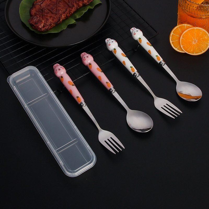 卡通兔子餐具套装 学生不锈钢筷便携高颜值风长柄勺子叉子