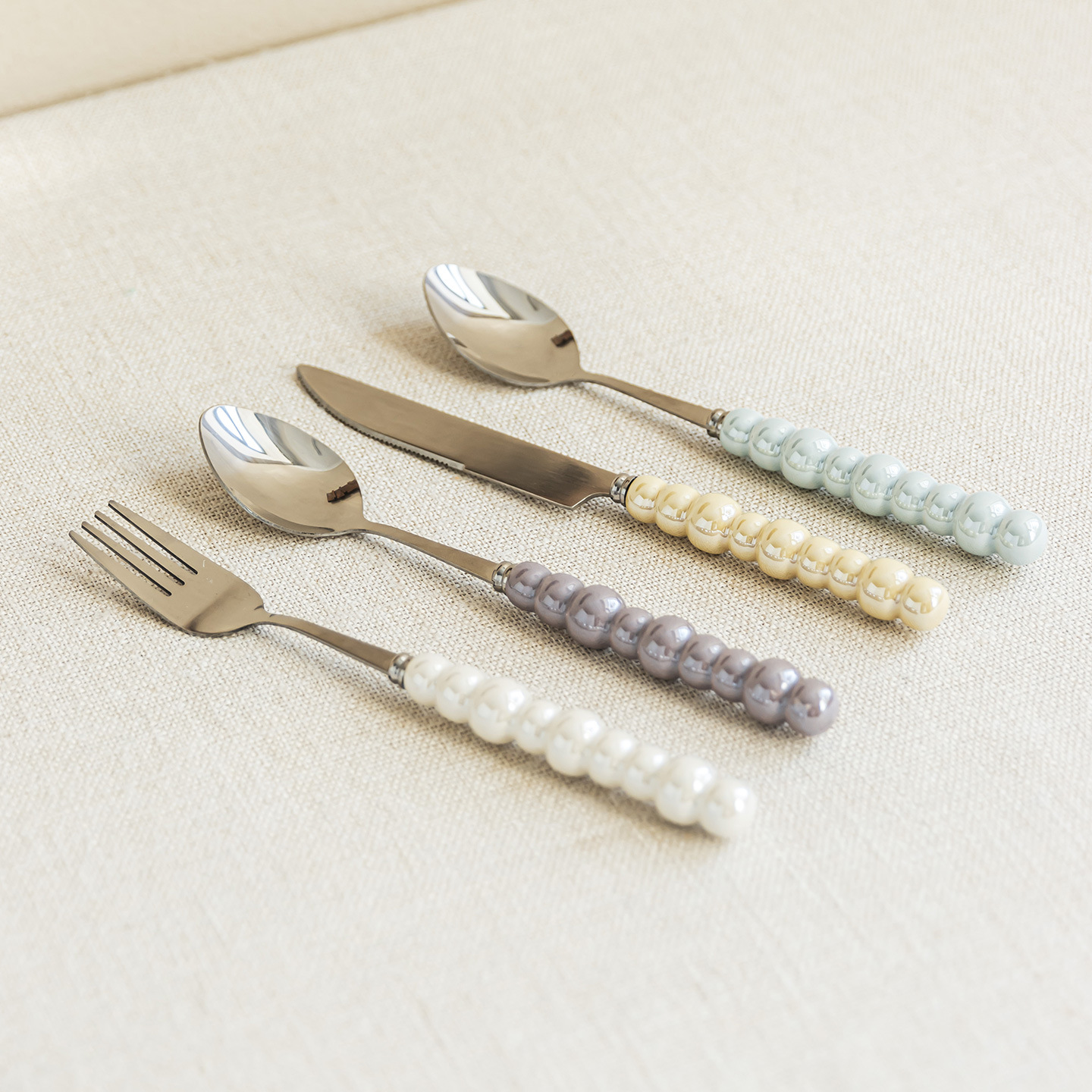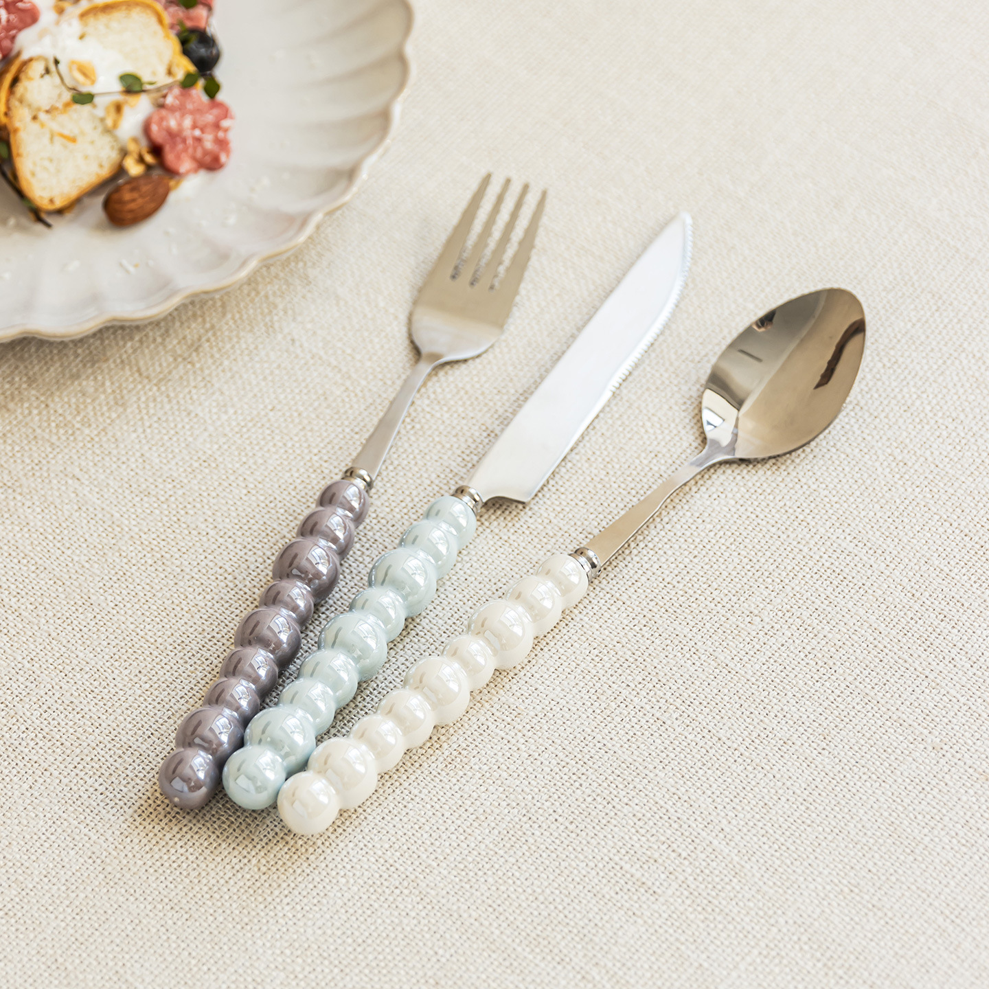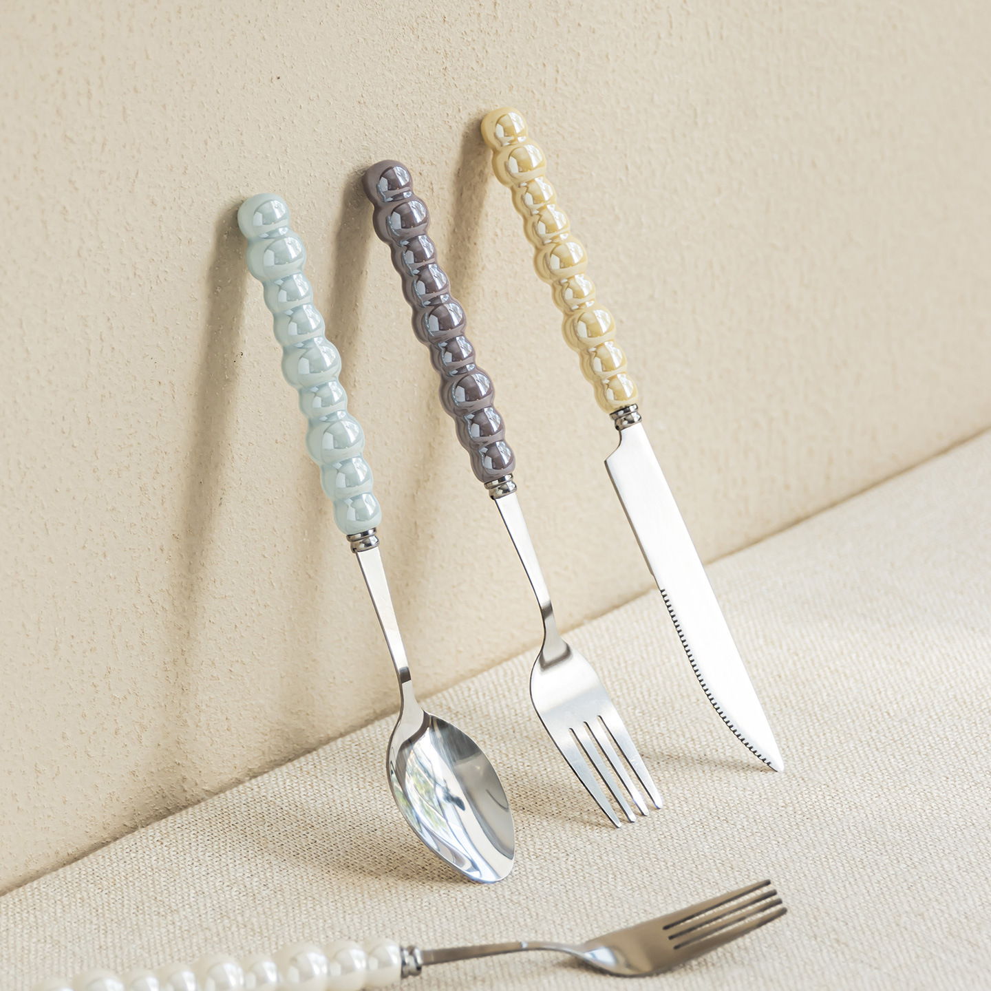 刀叉勺套装奶油风勺子餐具陶瓷手柄家用不锈钢叉子西餐甜品勺