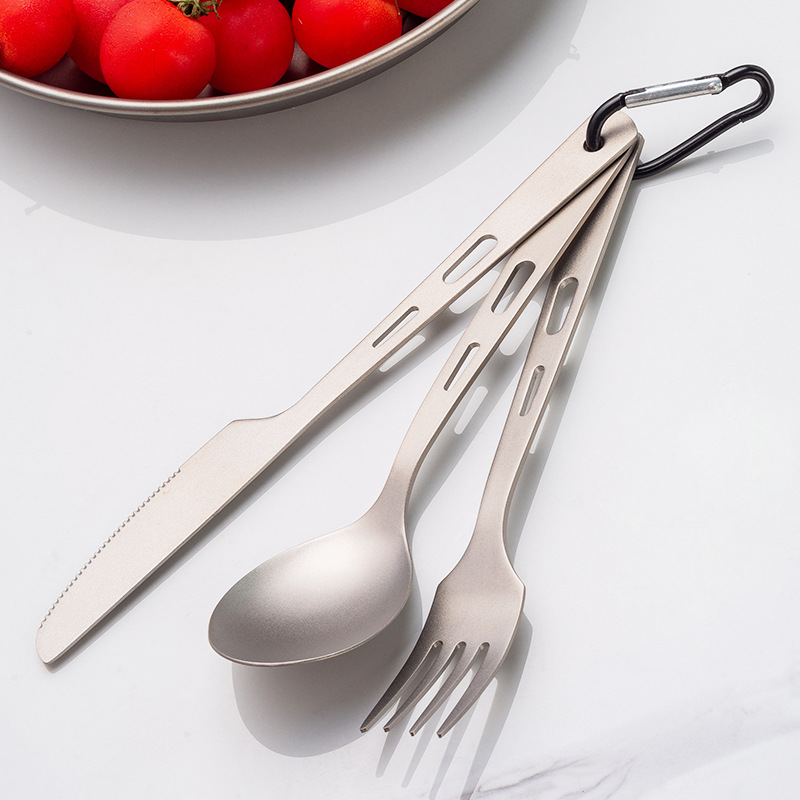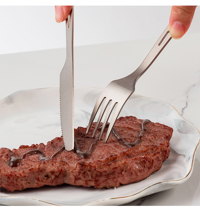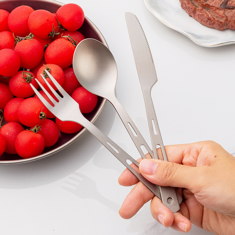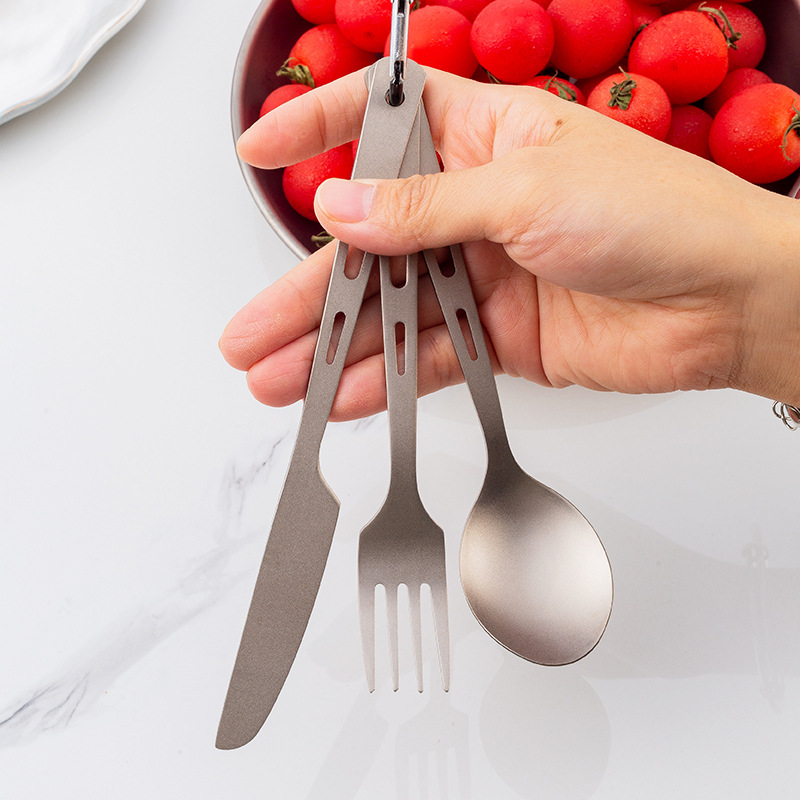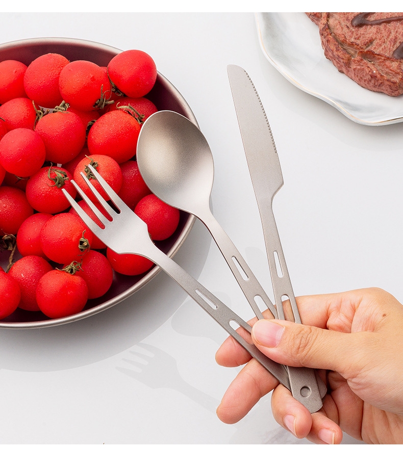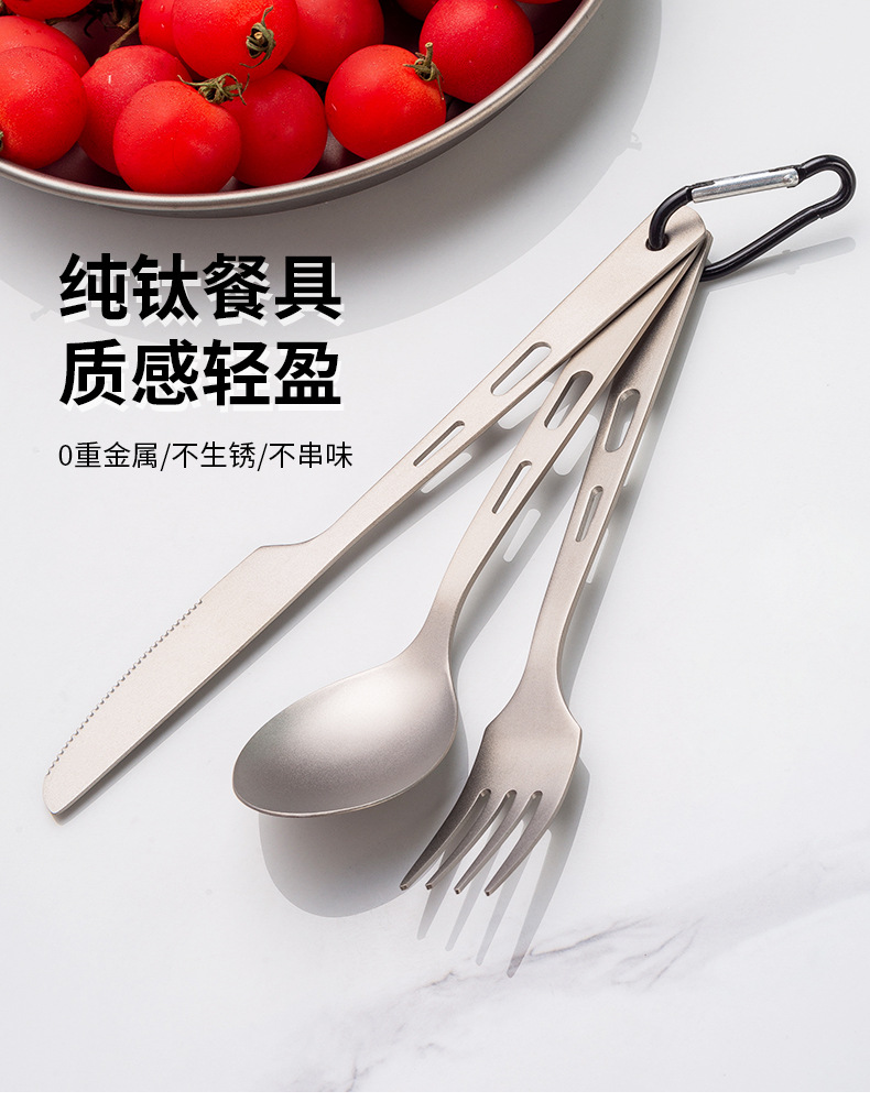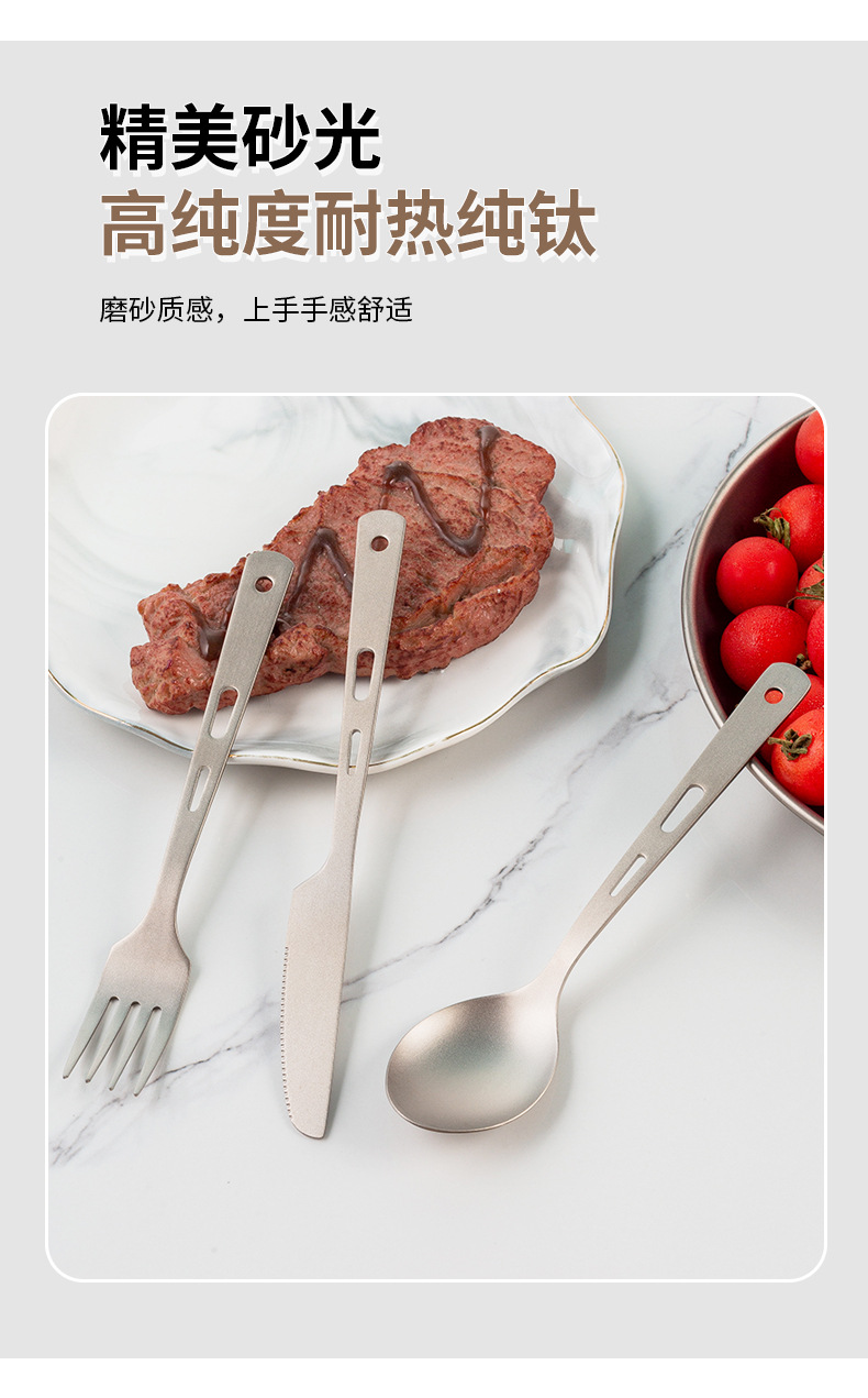 纯钛刀叉勺户外餐具旅游露营便携汤勺叉子牛排刀叉套装轻便钛叉勺