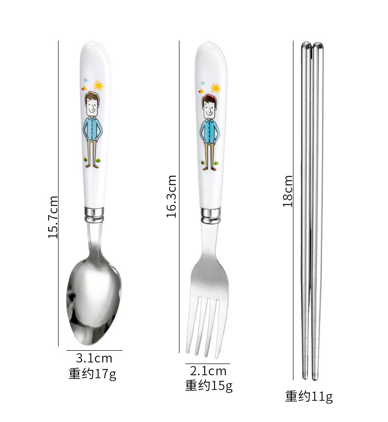 不锈钢餐具三件套户外简约便携儿童可爱卡通筷子勺子叉子套装