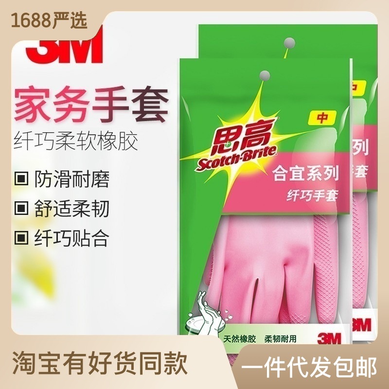 3M思高橡胶手套家务厨房洗碗手套乳胶防水清洁洗衣薄耐用胶皮手套