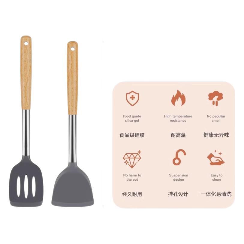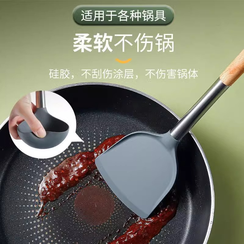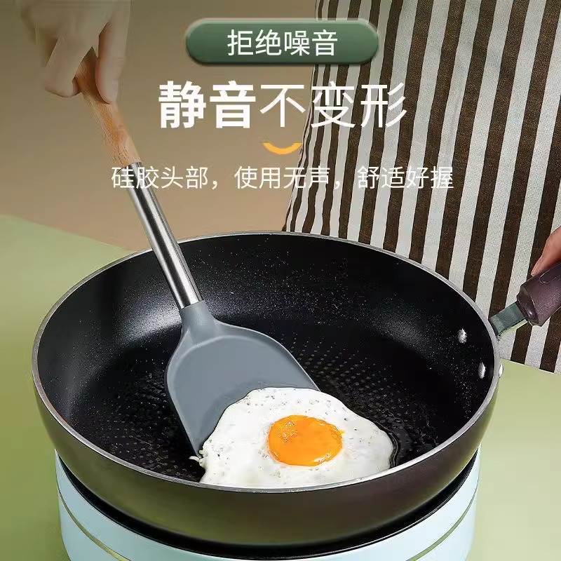 烹饪铲硅胶铲木柄不锈钢硅胶铲高颜值不粘锅铲厨具炒菜厨房铲