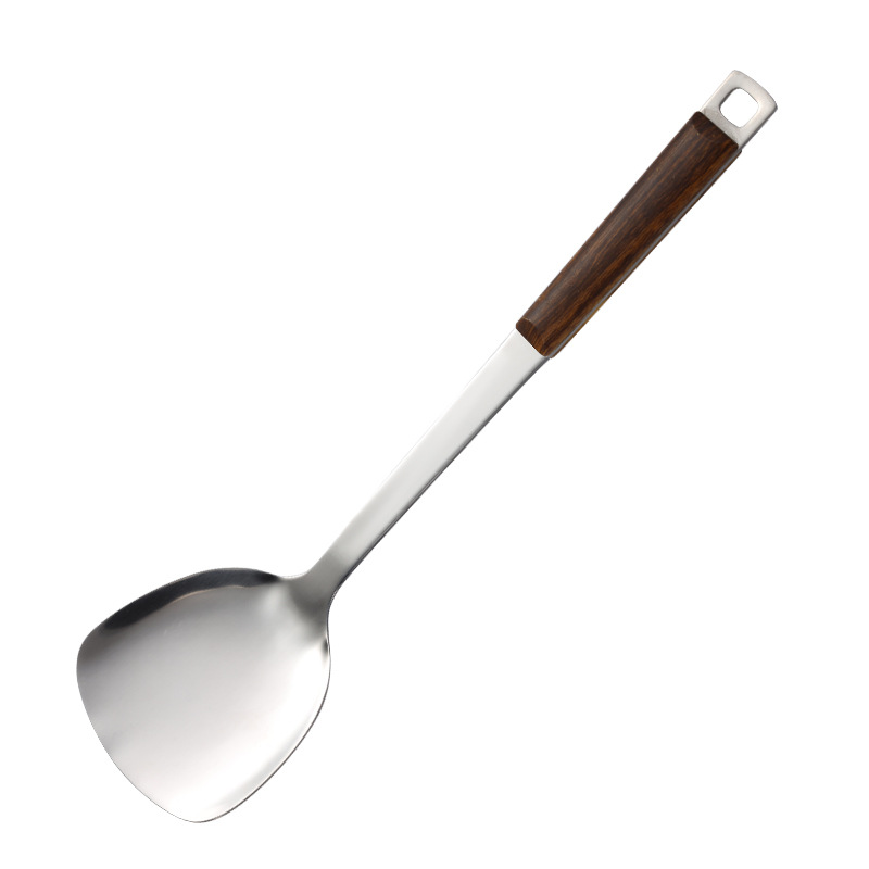锅铲不锈钢古木夹柄家用粥勺漏勺煎铲汤勺炒菜烹饪厨具5件套