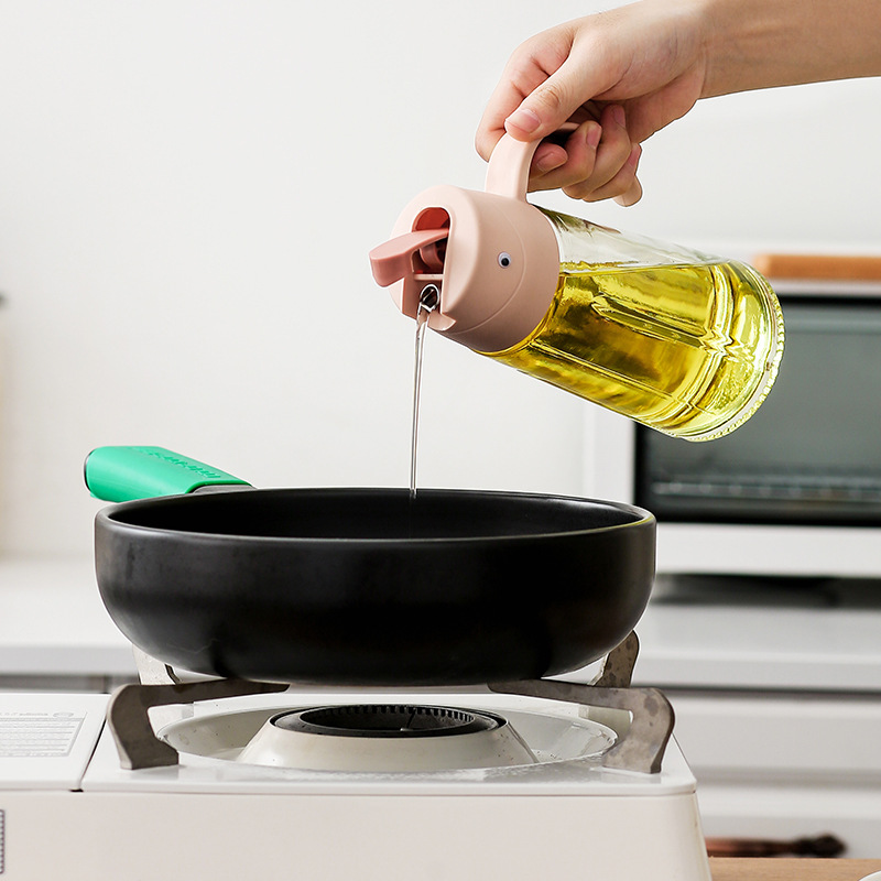 玻璃油壶家用厨房用品带把鹦鹉自动开合开盖油瓶不挂油调料瓶控油