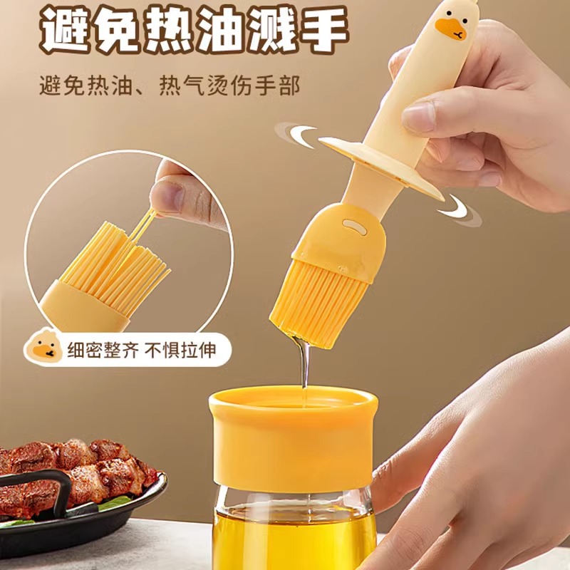 小黄鸭油刷壶家用硅胶油刷带瓶厨房烙饼食品级烧烤烘焙一体油刷瓶