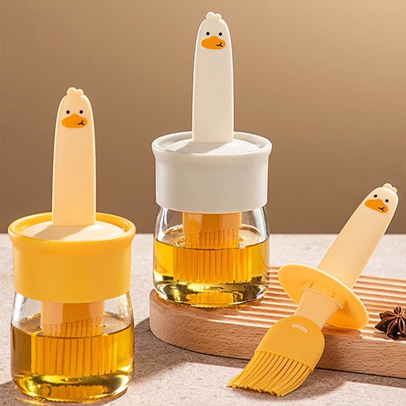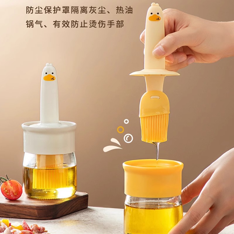 小黄鸭油壶油刷子瓶子一体家用耐高温烧烤硅胶刷烘焙带瓶油刷瓶