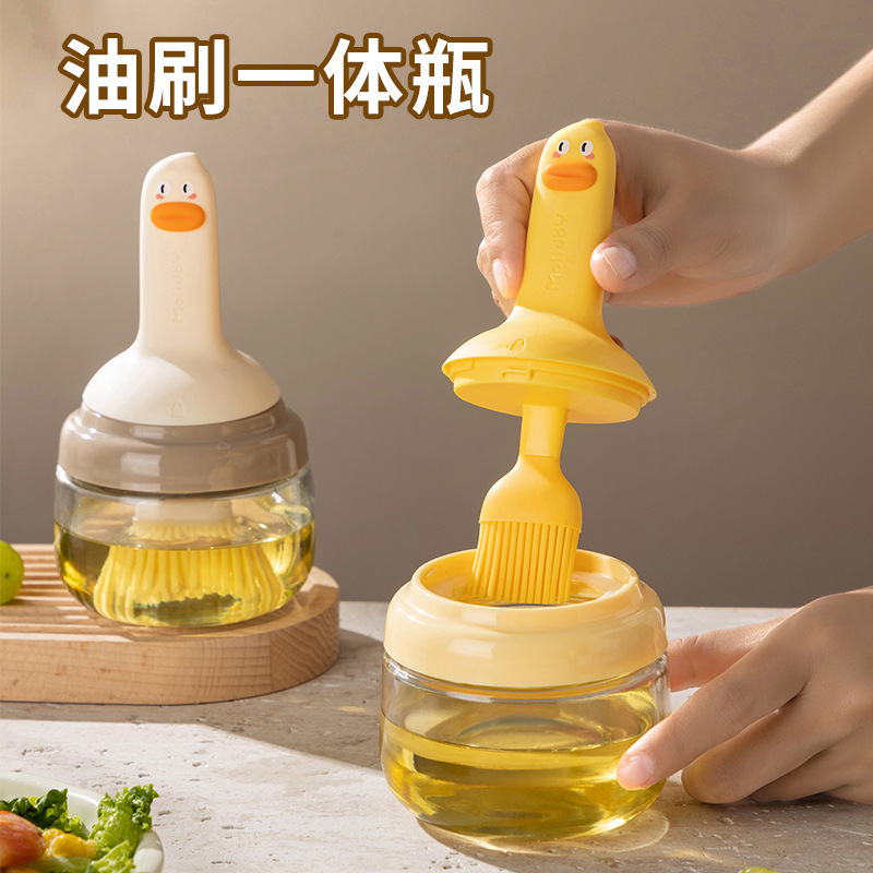 小黄鸭油刷油壶硅胶玻璃户外烧烤露营家用厨房油壶刷子一体式油壶