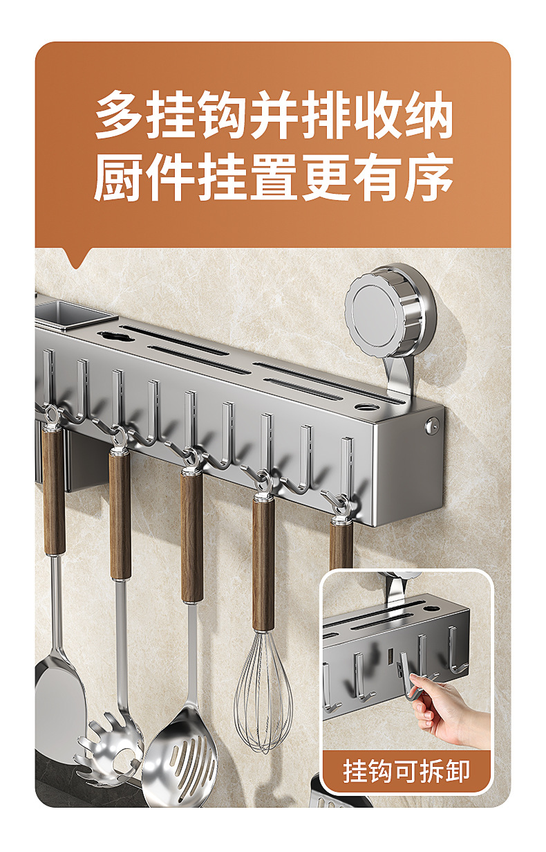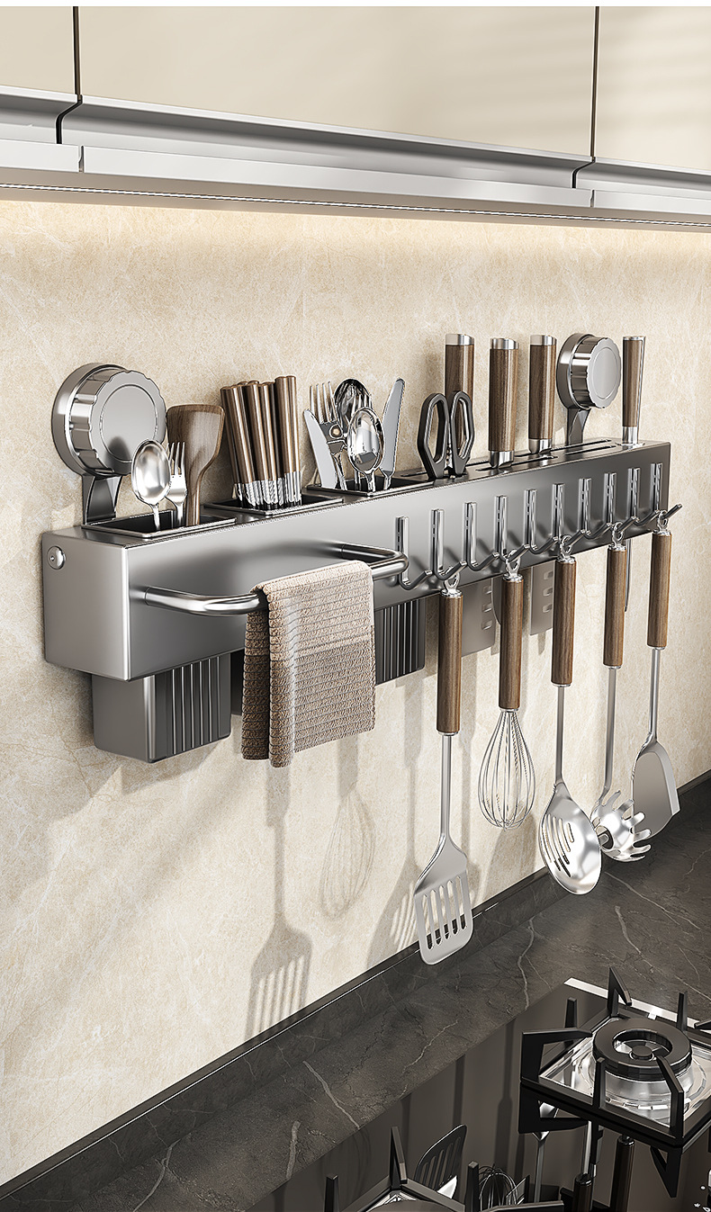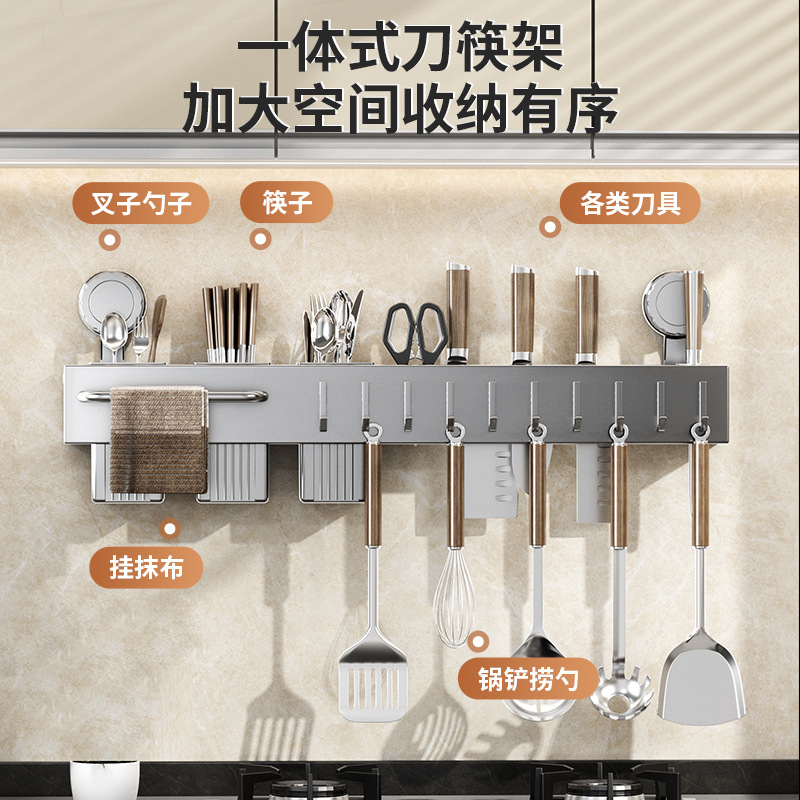 厨房置物架免打孔刀架多功能壁挂筷子筒刀座带勾筷子铲勺子收纳架