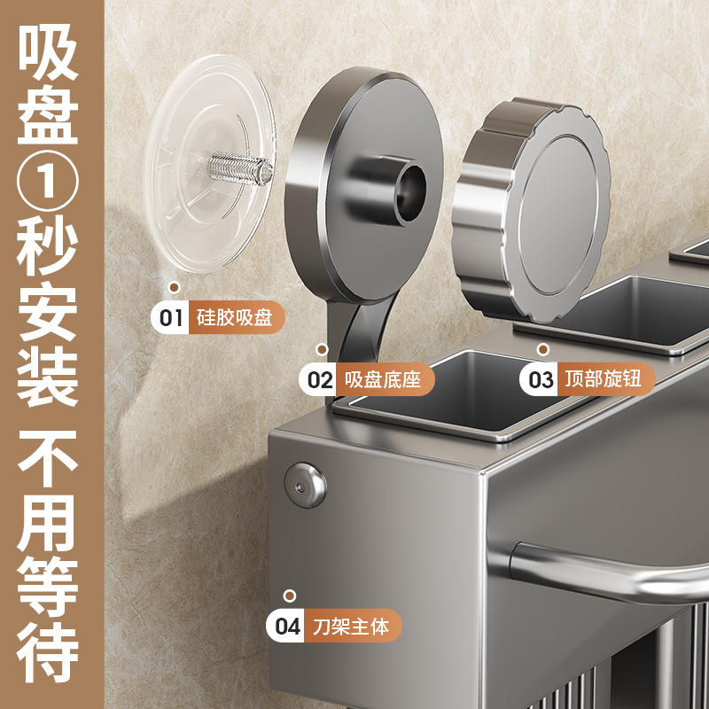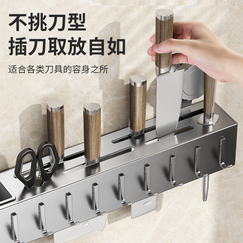 吸盘排钩厨房打孔多功能刀架壁挂式刀具收纳架刀架联排挂钩免锅铲
