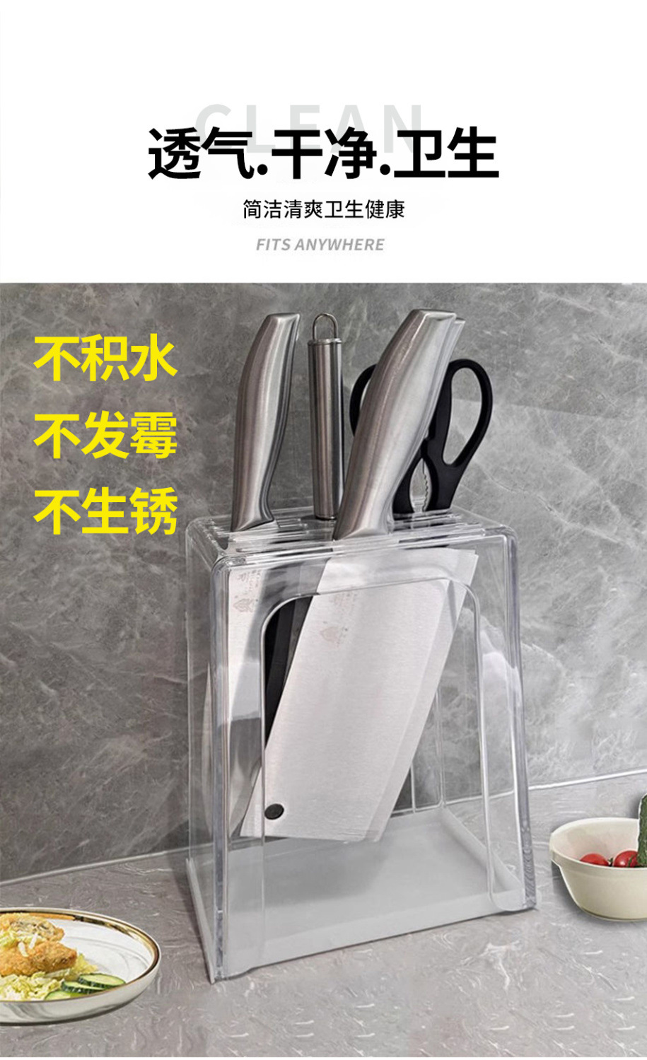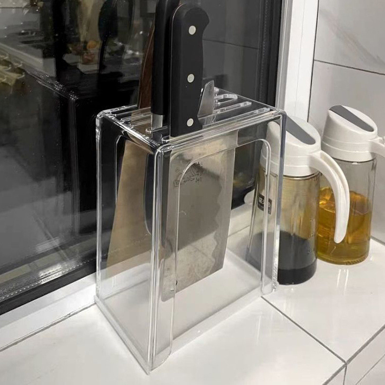 高档防霉透明亚克力刀架置物架厨房刀座收纳架一体台面壁挂刀架