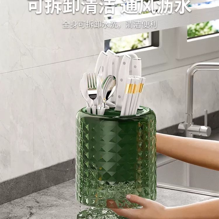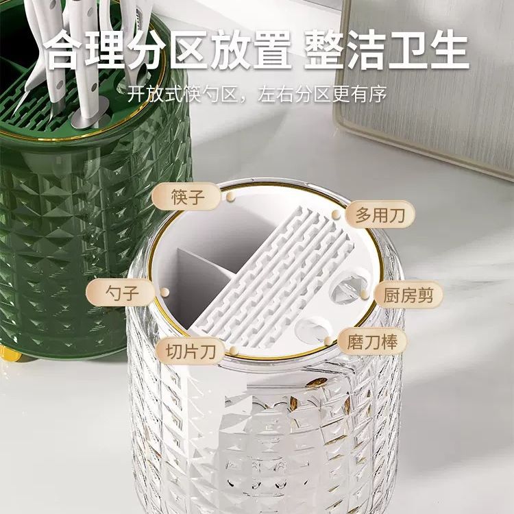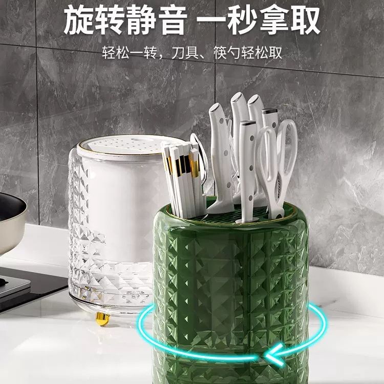 旋转刀架置物架厨房台面多功能刀叉勺筷筒笼菜刀具一体收纳盒刀座