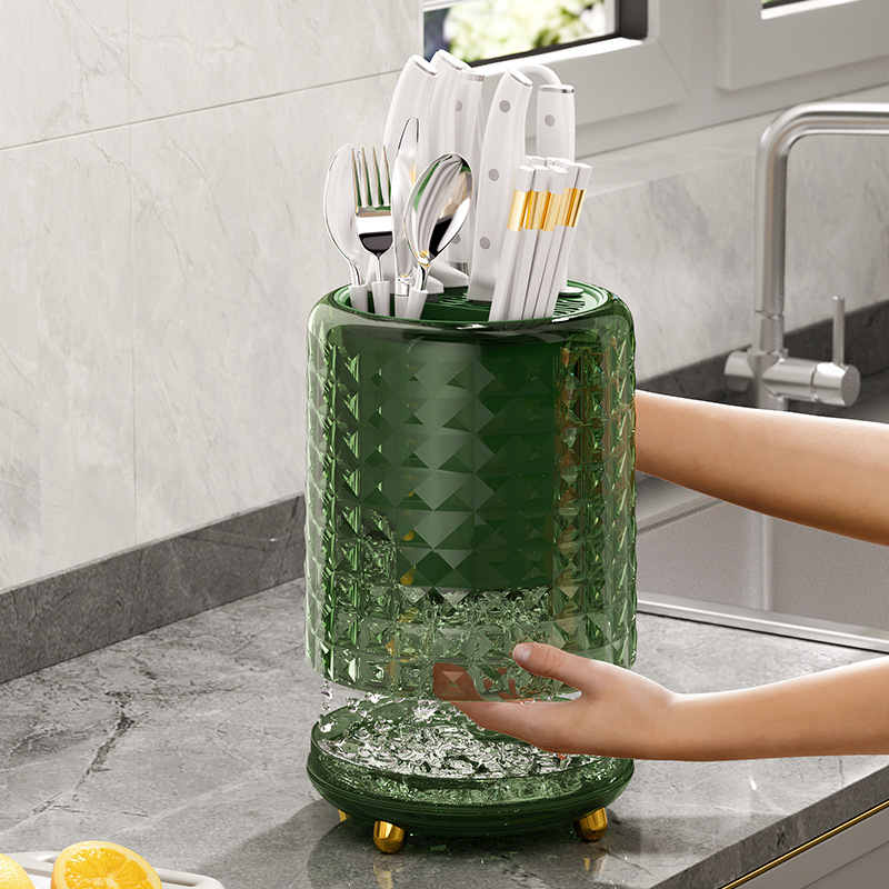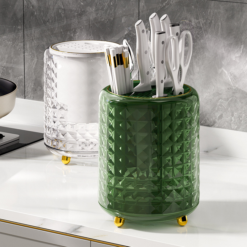厨房旋转刀架置物架台面多功能筷子筒刀具一体收纳家用架子