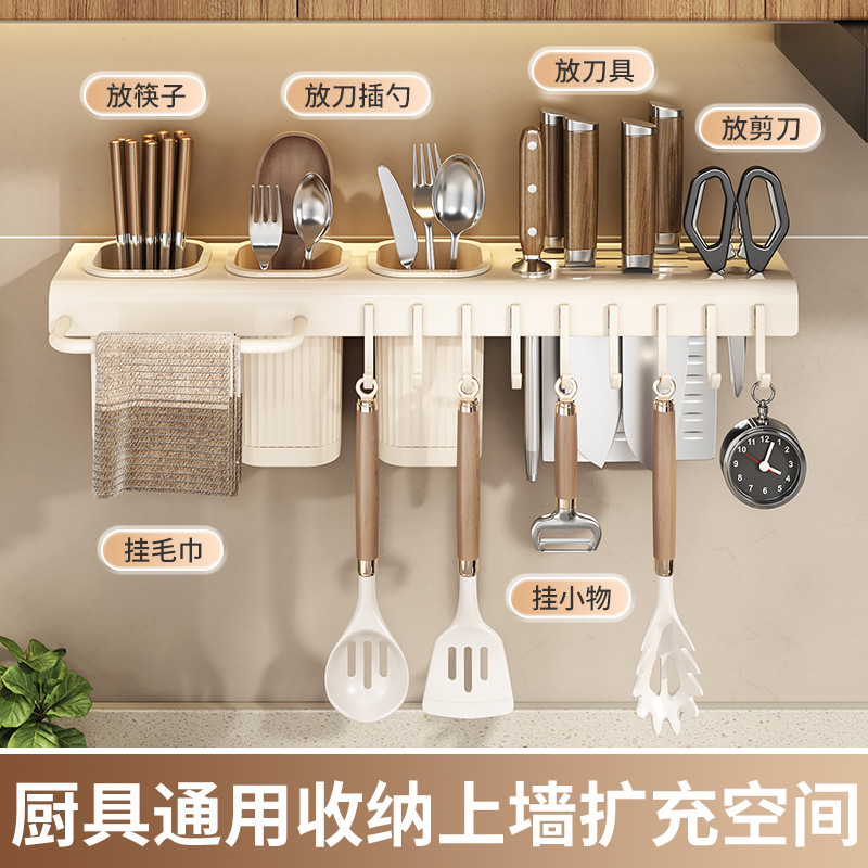 【升级款】奶黄色-50cm(3个筷子筒+1个抹布架+9钩)