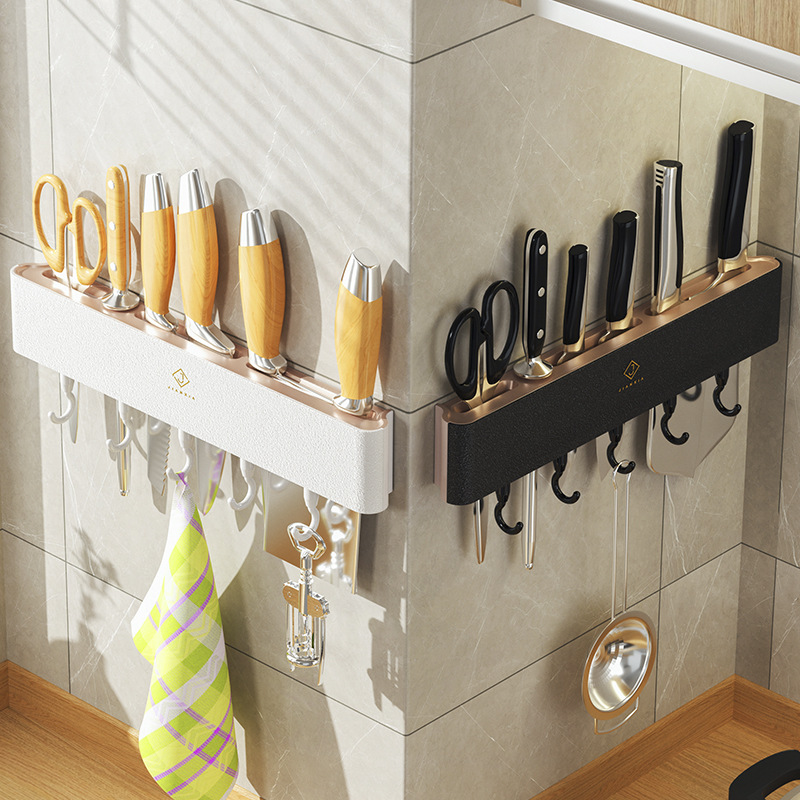 刀架免打孔厨房置物架壁挂式家用刀具锅铲勺收纳架多功能墙上挂钩