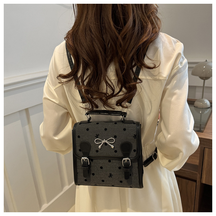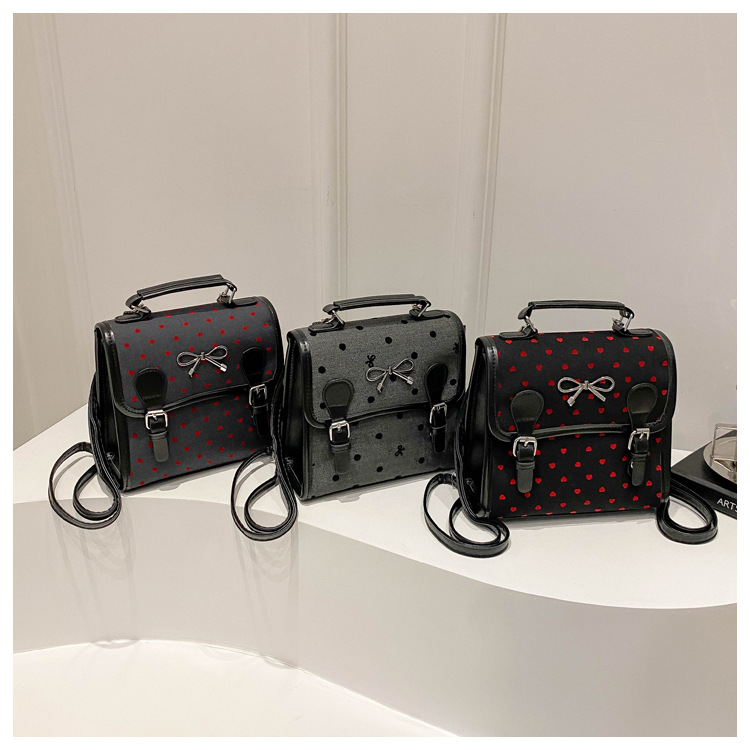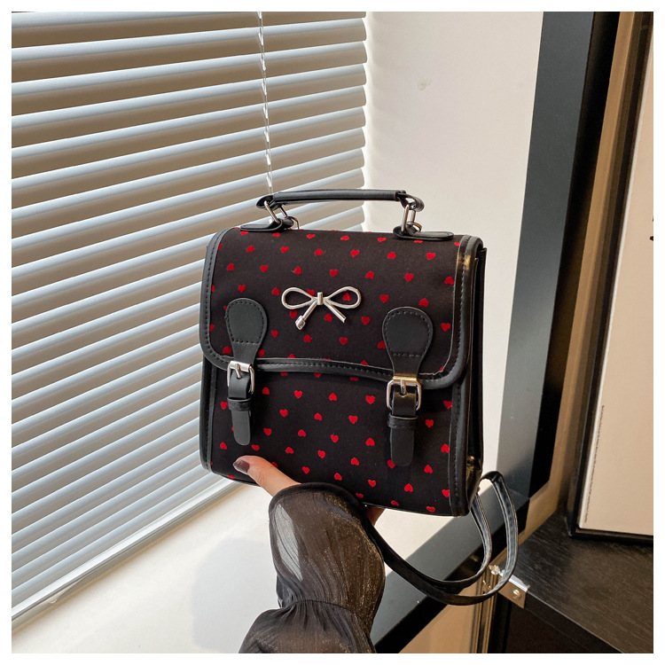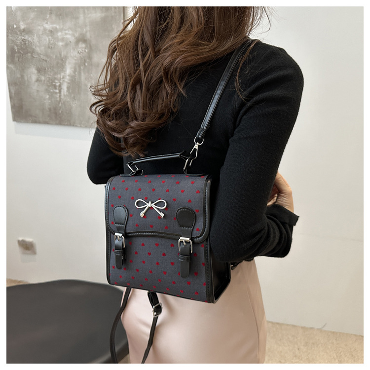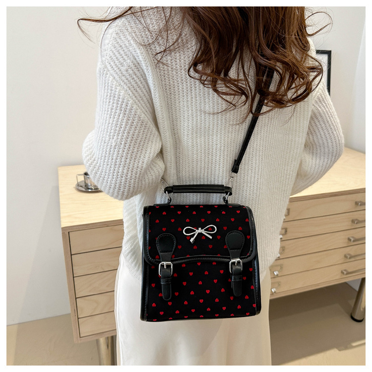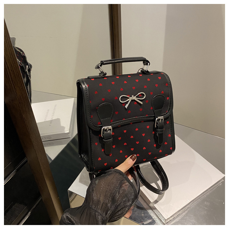休闲时尚手提小包包女包新款爱心印花帆布双肩背包学生书包