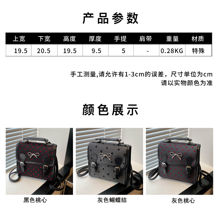 爱心迷你双肩包女新款甜美少女多巴胺学生通勤书包单肩斜挎包