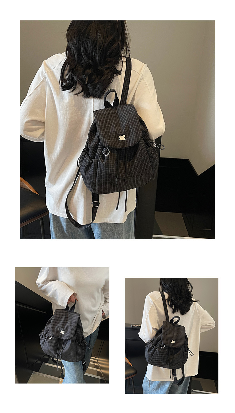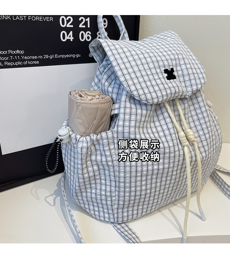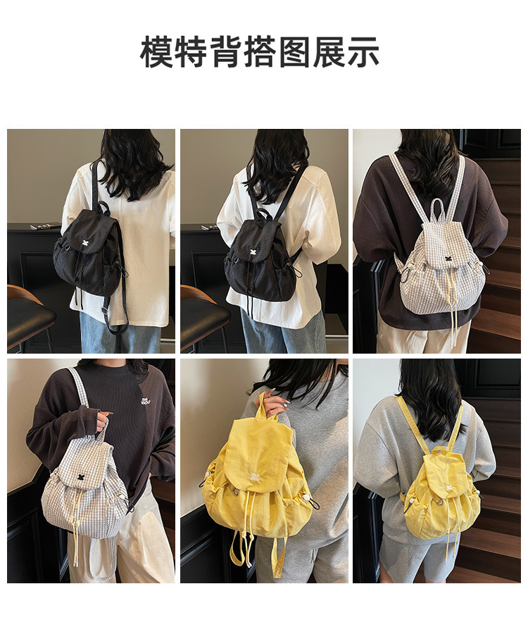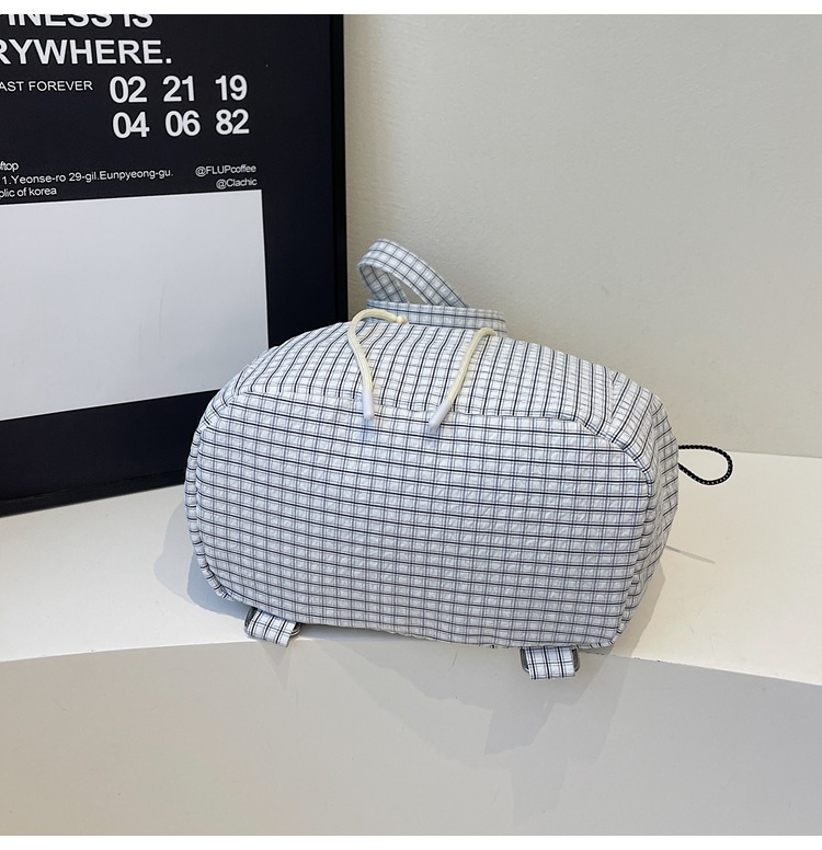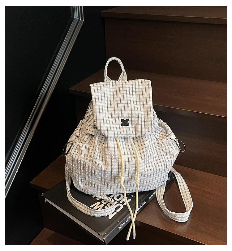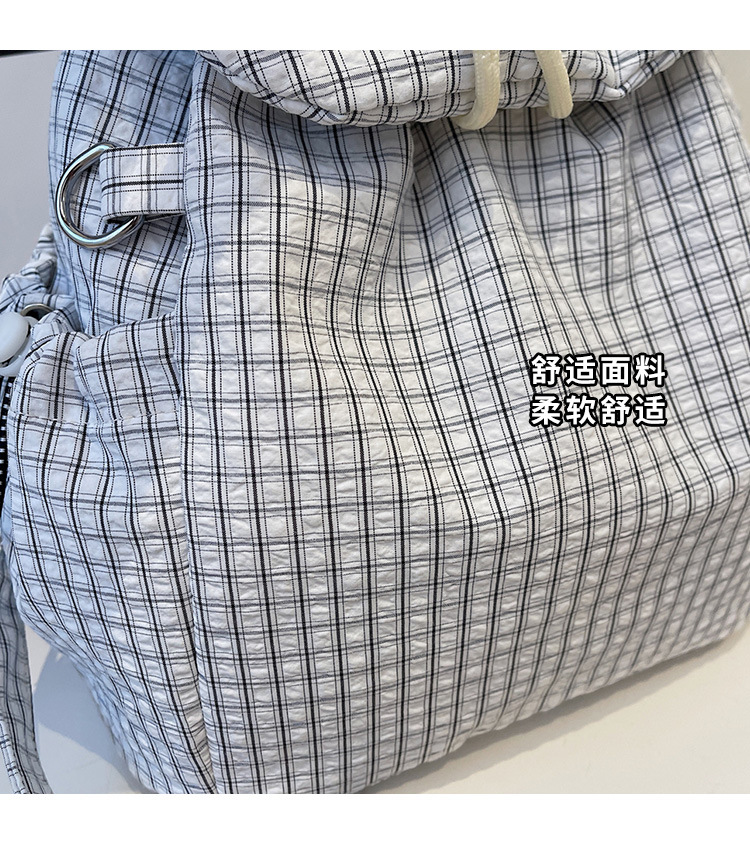 外出包超轻布面大容量抽带口格子休闲运动风学院风双肩包书包