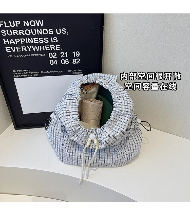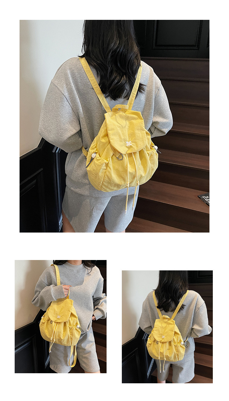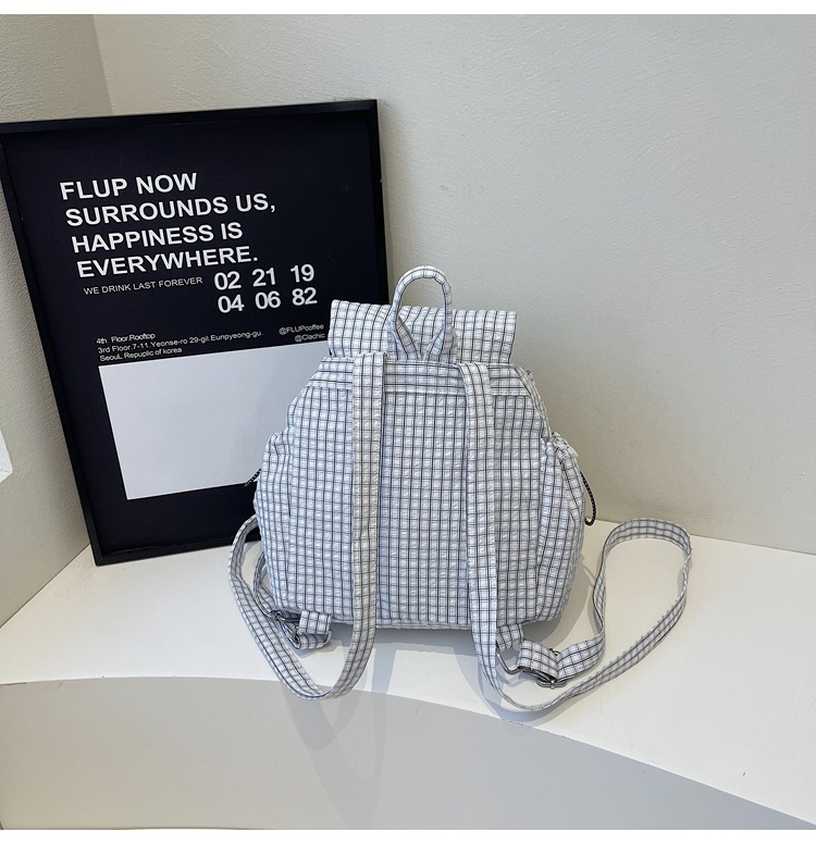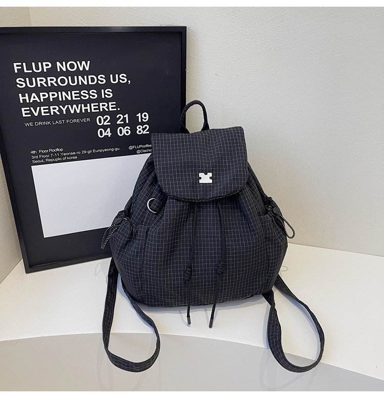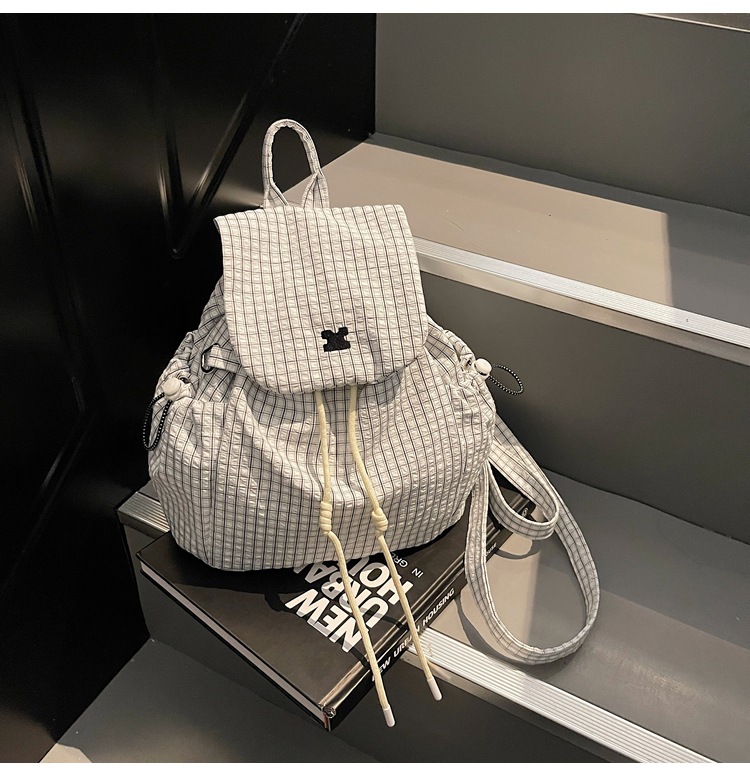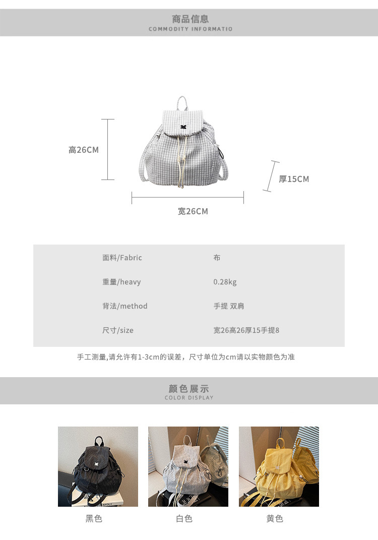 外出包超轻布面大容量抽带口格子休闲运动风学院风双肩包书包