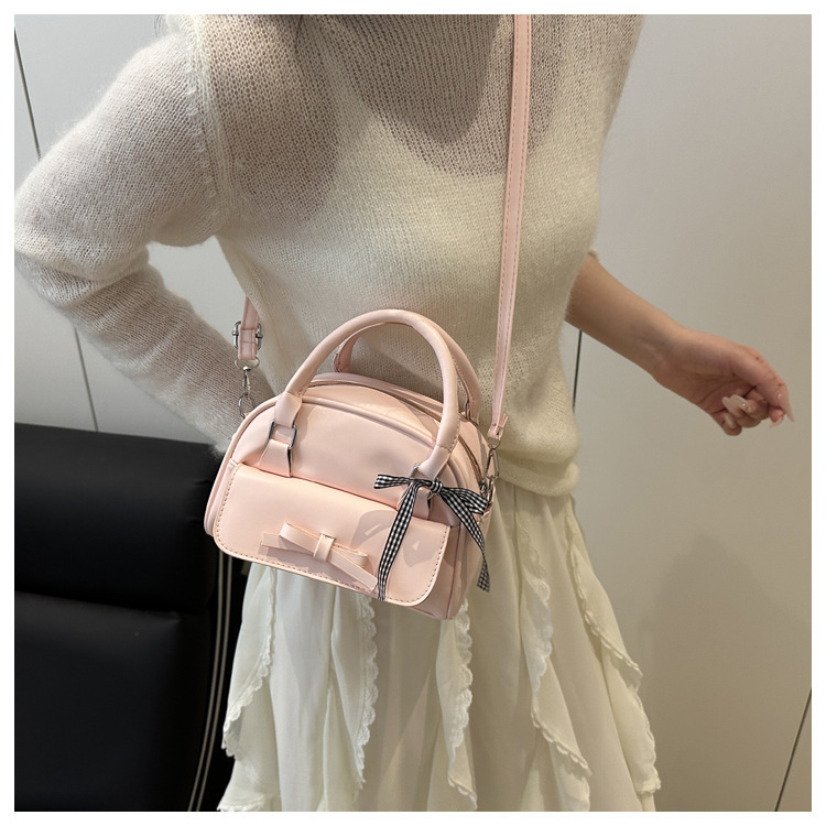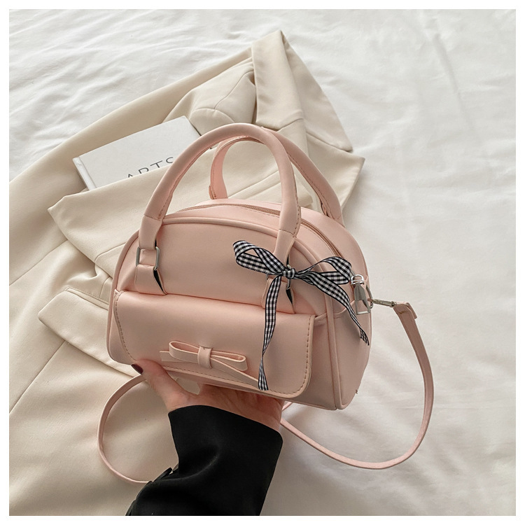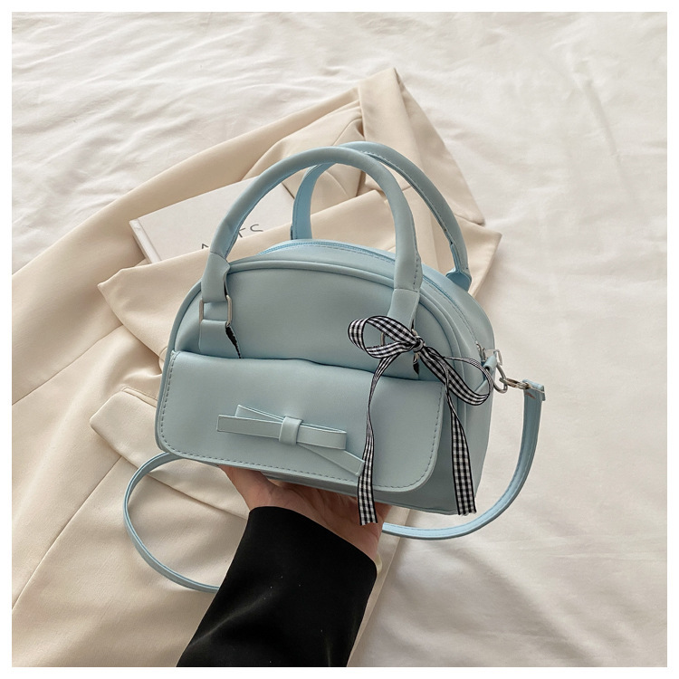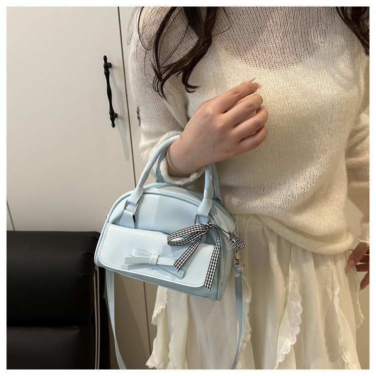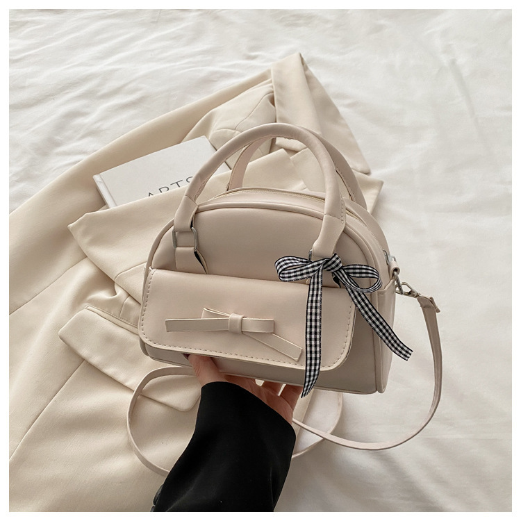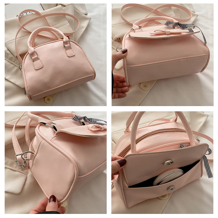 2025韩版ins纯色大容量唯美清新个性蝴蝶结时尚单肩手拎贝壳包女
