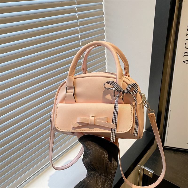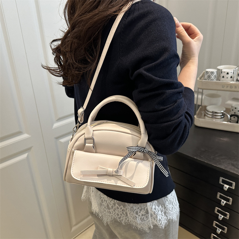 韩版ins2025纯色大容量唯美清新个性蝴蝶结时尚单肩手拎贝壳包女