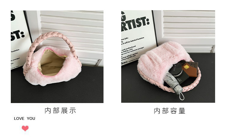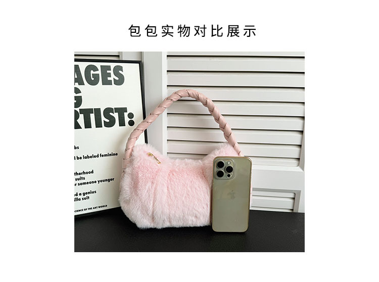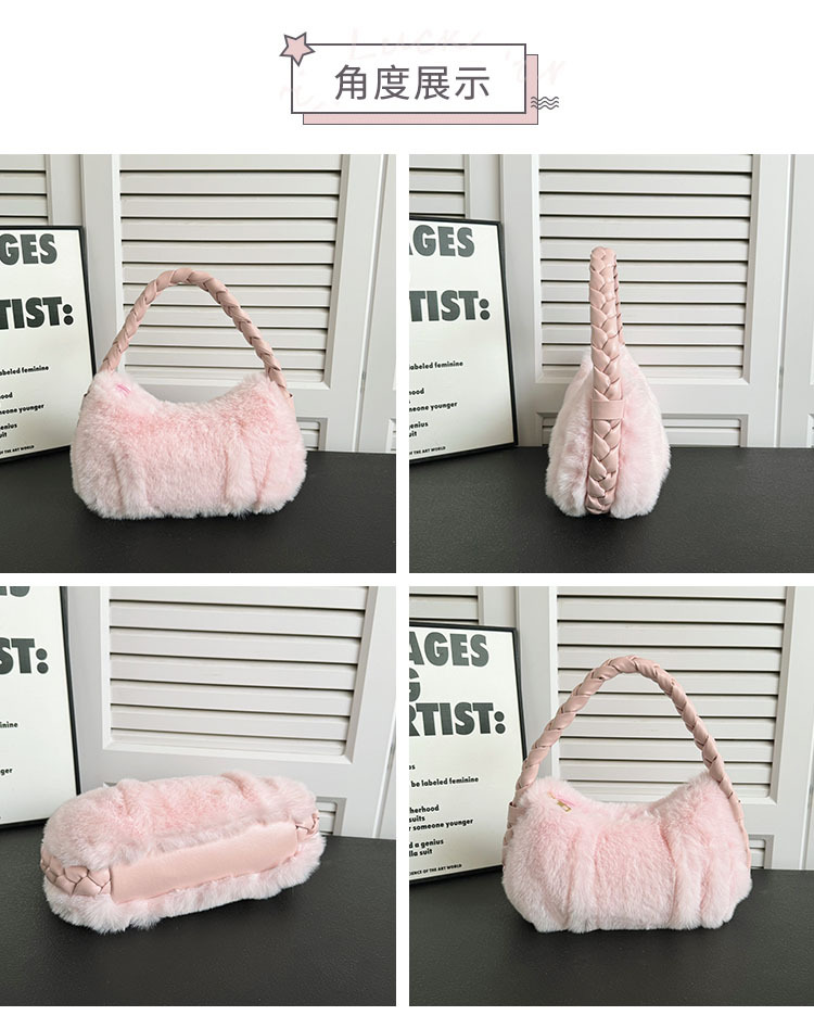 秋冬新款麻花编织百搭高级感毛绒包包简约斜挎包手提包女时尚