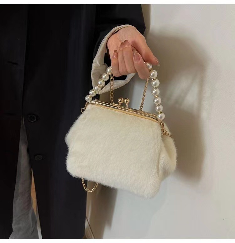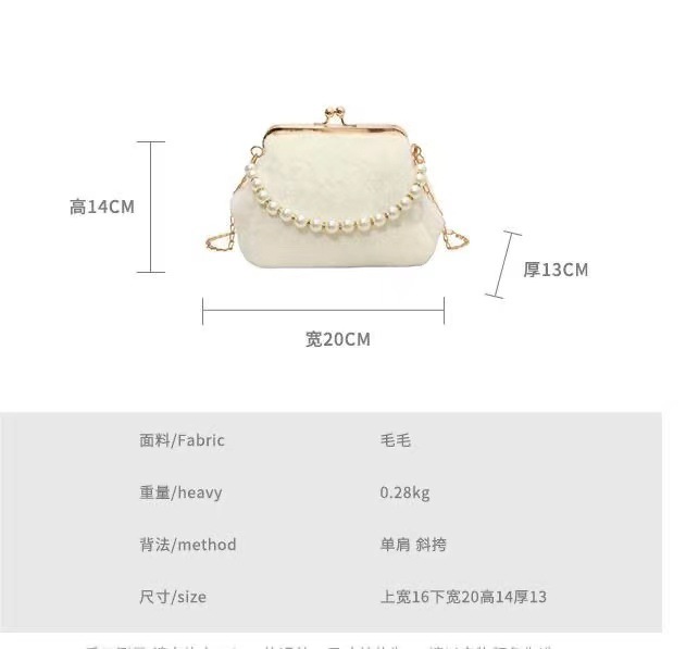 新款秋冬珍珠高级毛绒手提包贝壳毛绒包毛绒链条包单肩斜挎女包包