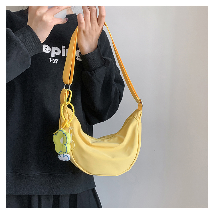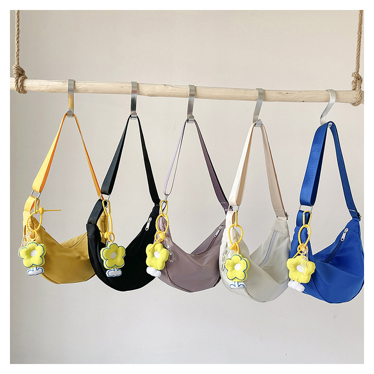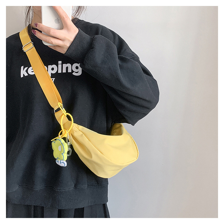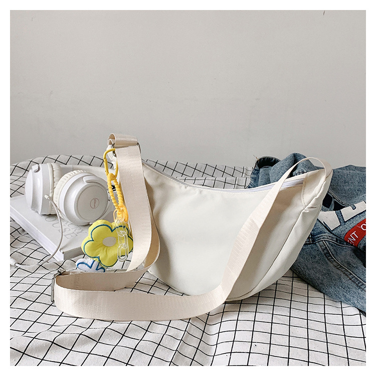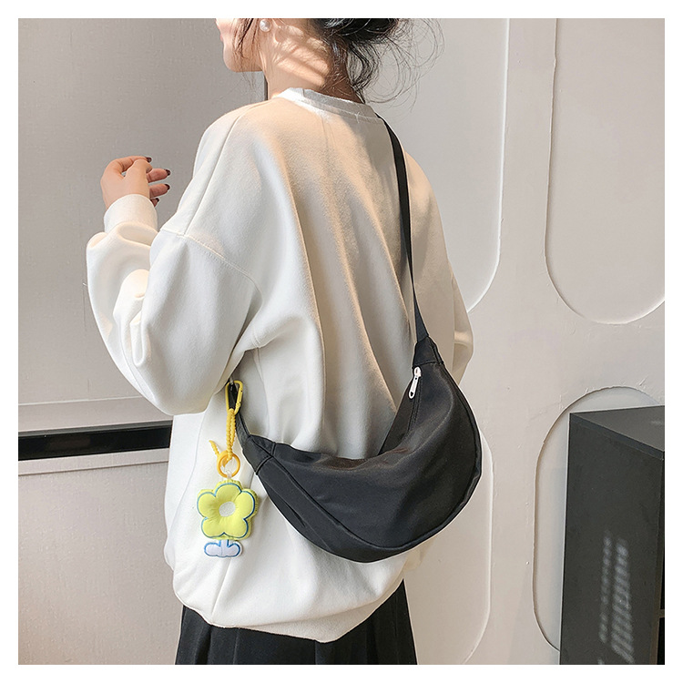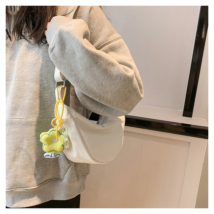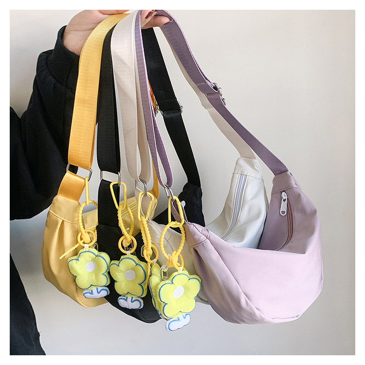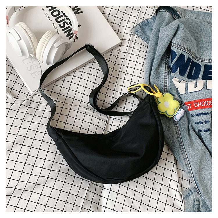日系饺子包女休闲百搭少女斜挎包纯色上课通勤单肩包