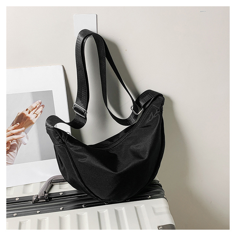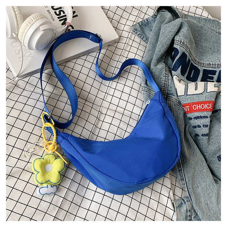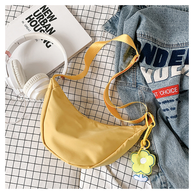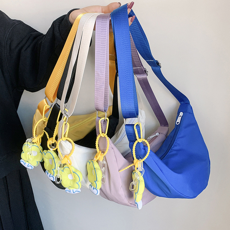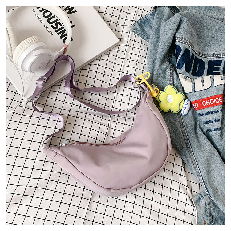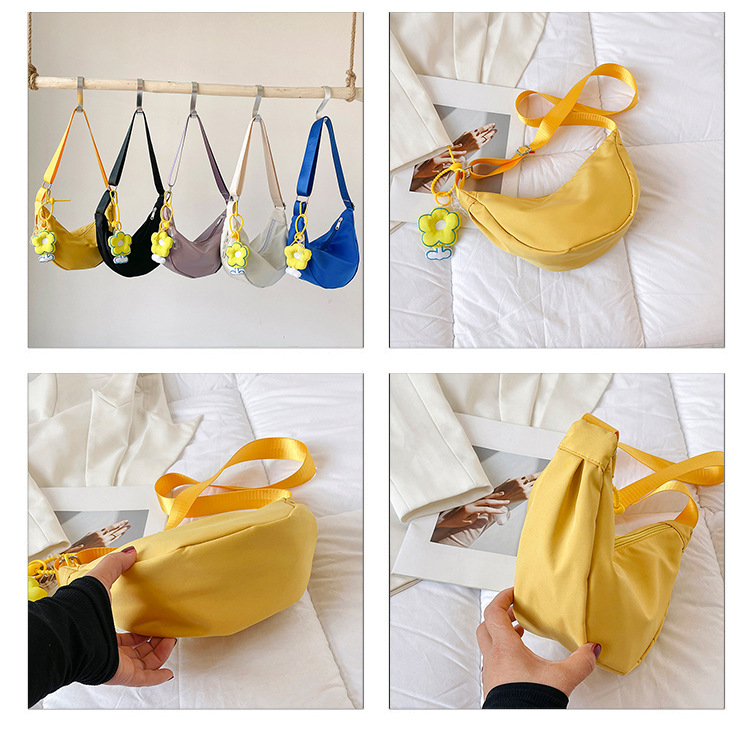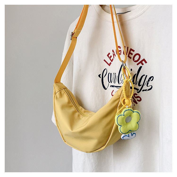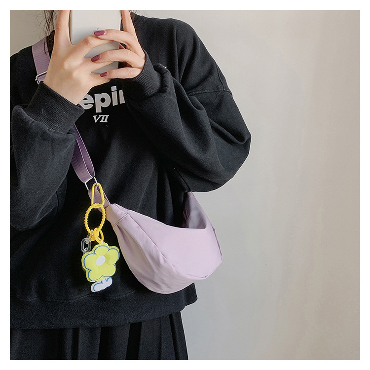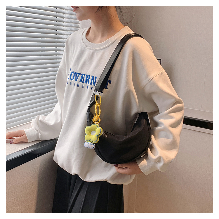 日系饺子包女休闲百搭少女斜挎包纯色上课通勤单肩包