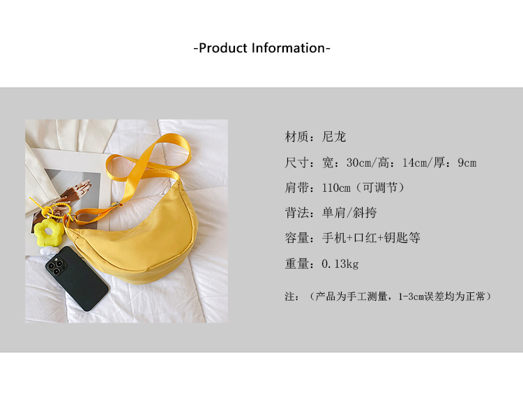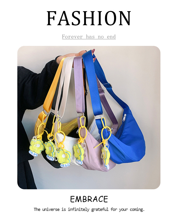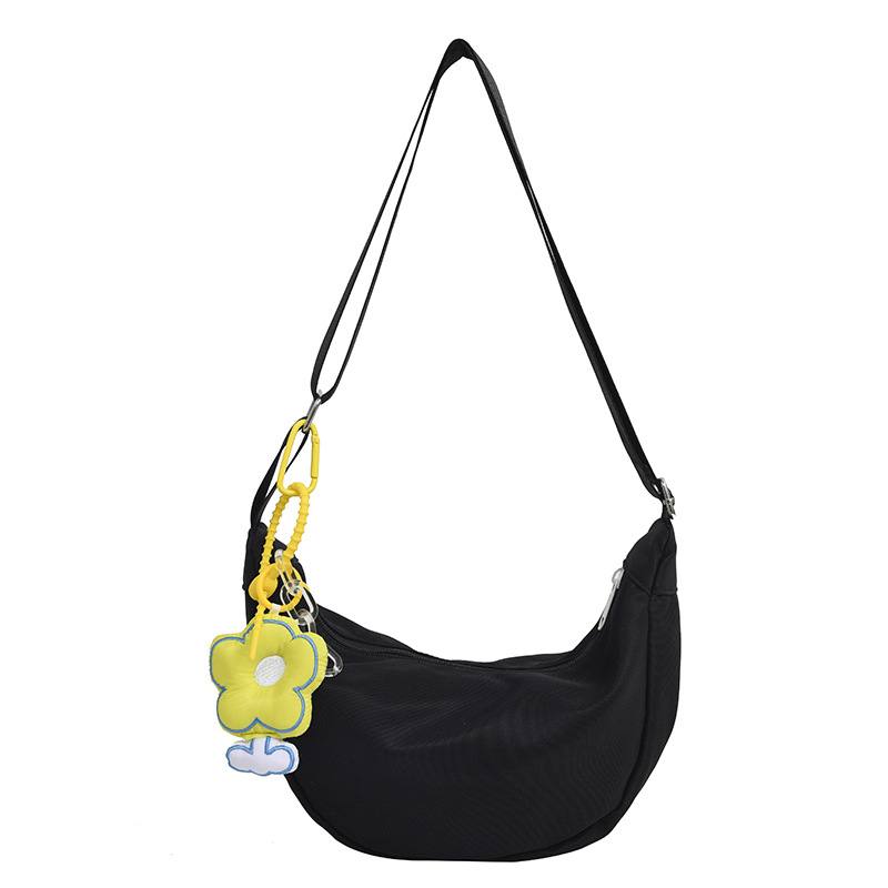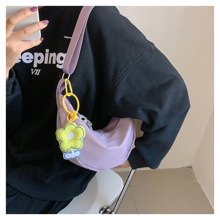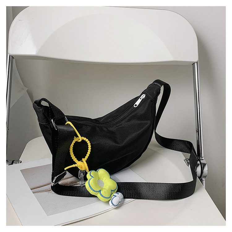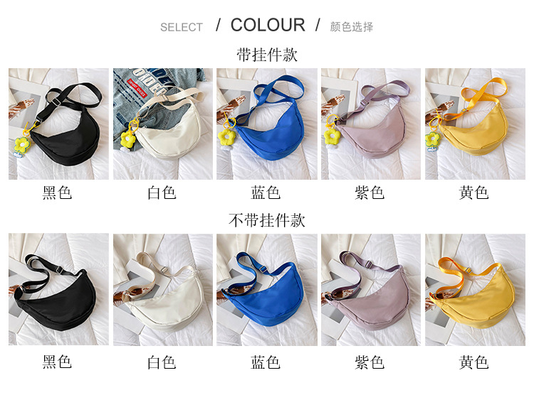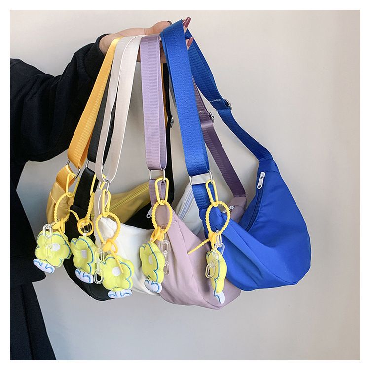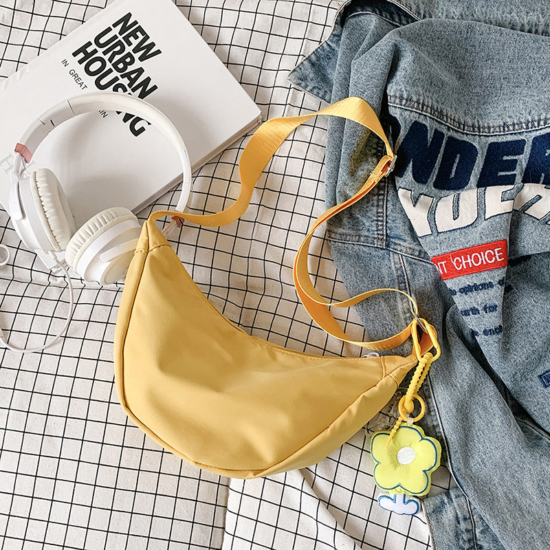 日系饺子包女休闲百搭少女斜挎包纯色上课通勤单肩包
