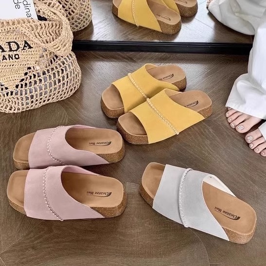 巨遮脚~复古真皮软木厚底休闲勃肯拖鞋女凉拖外穿
