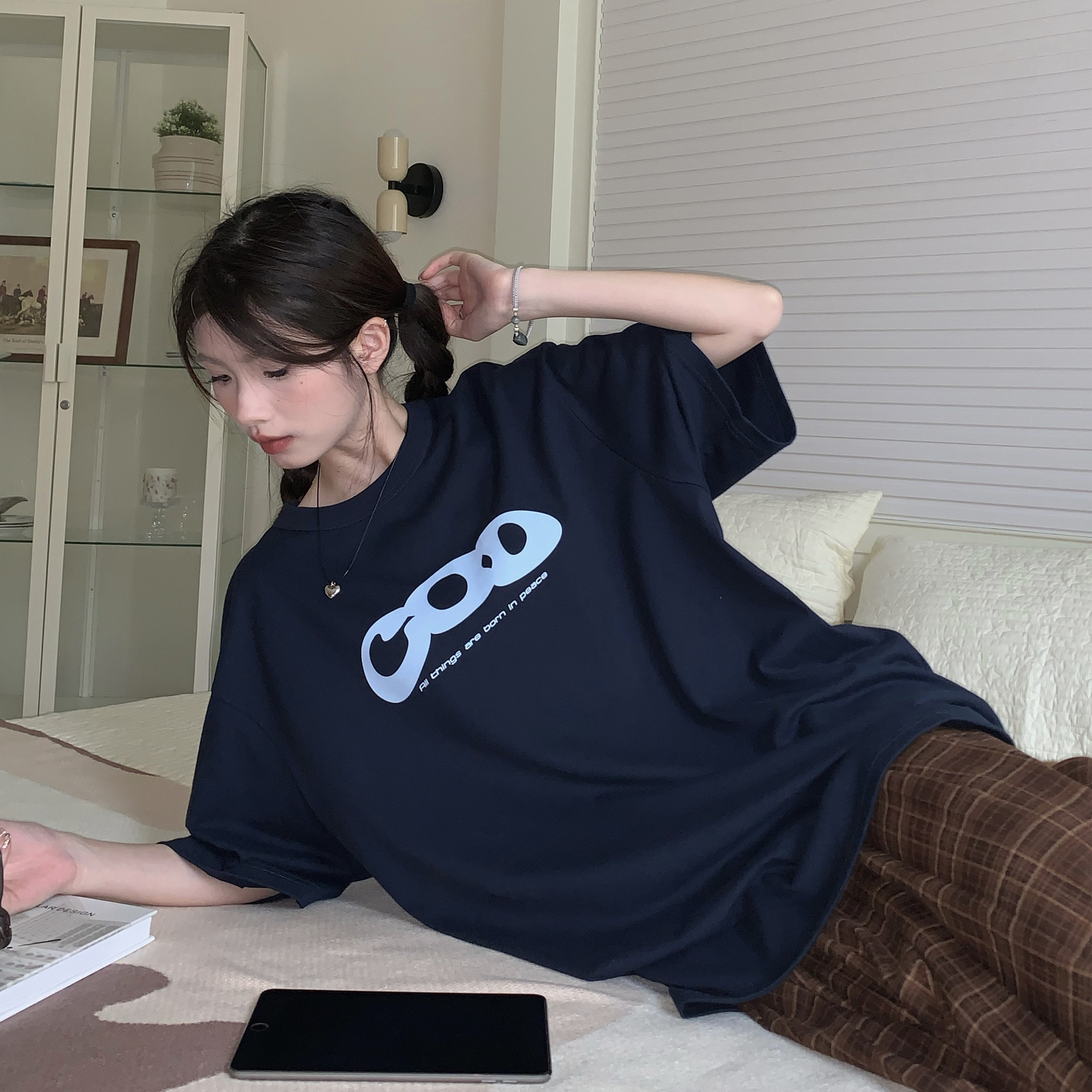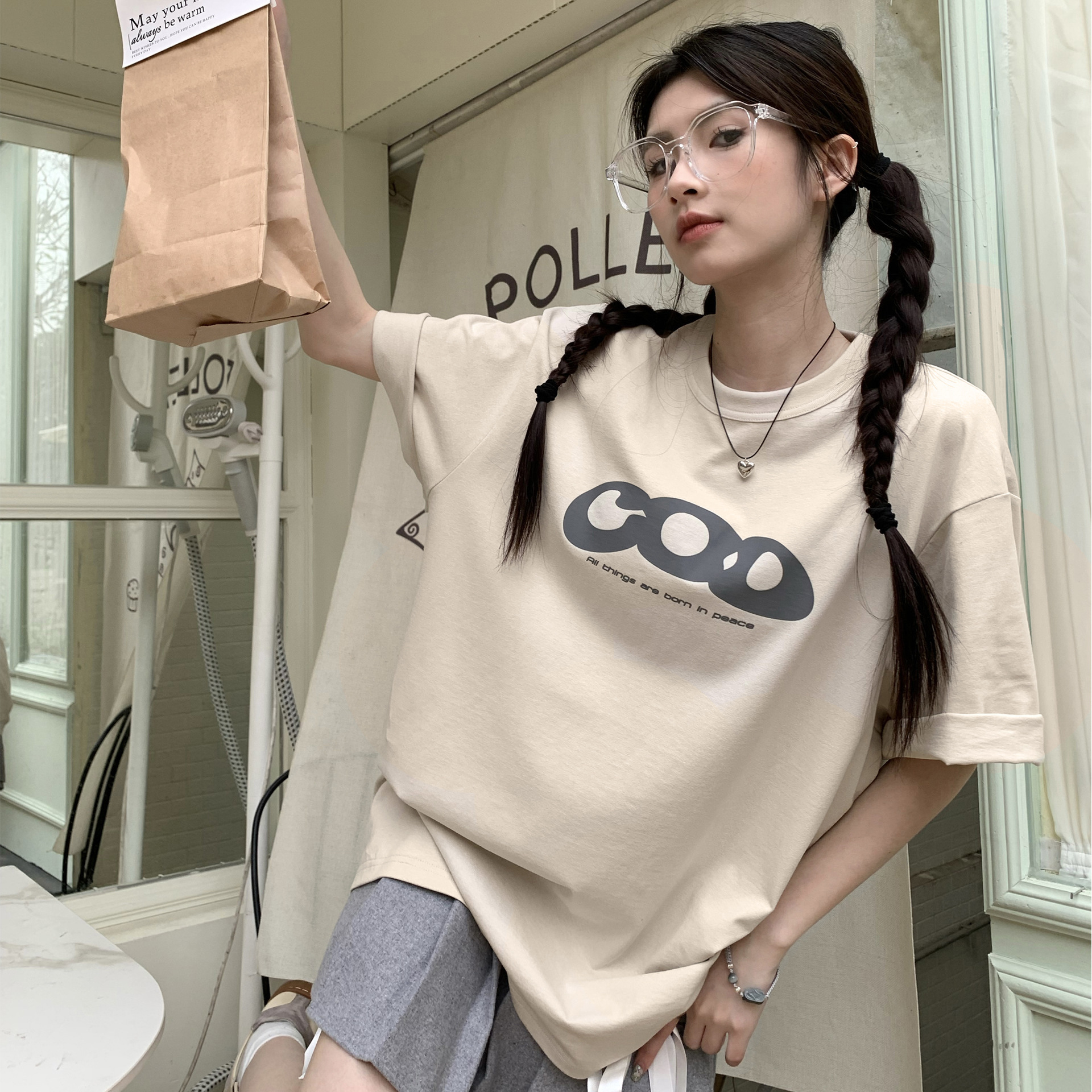 字母印花宽松基础款T恤圆领夏季情侣短袖