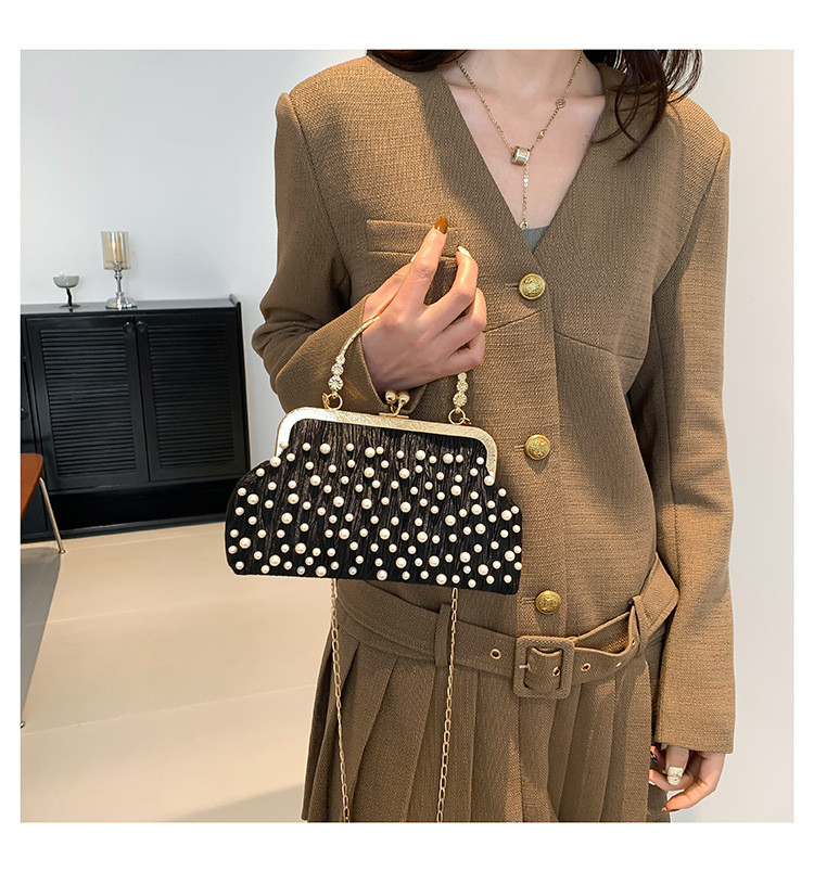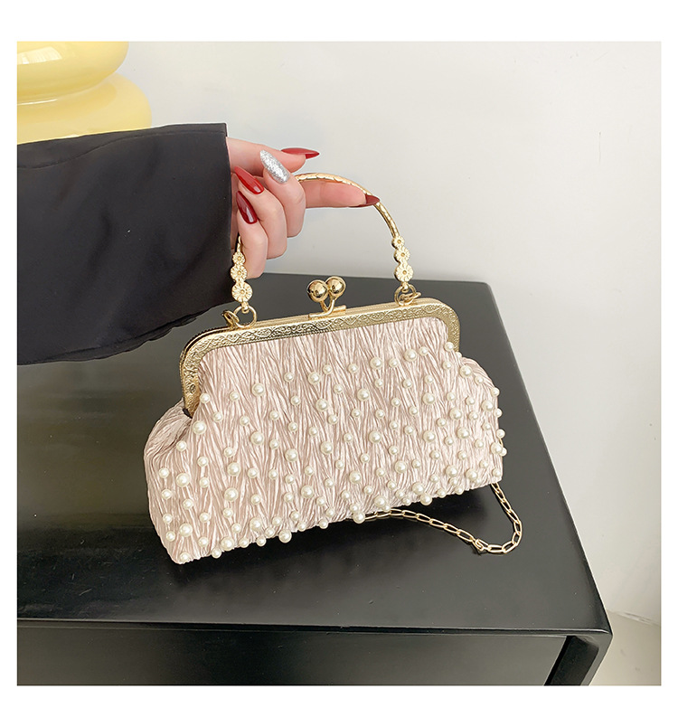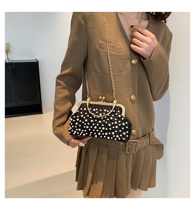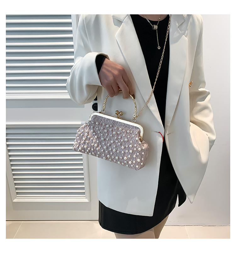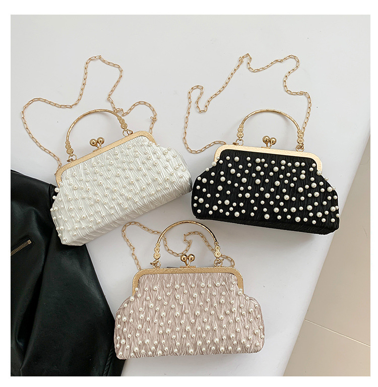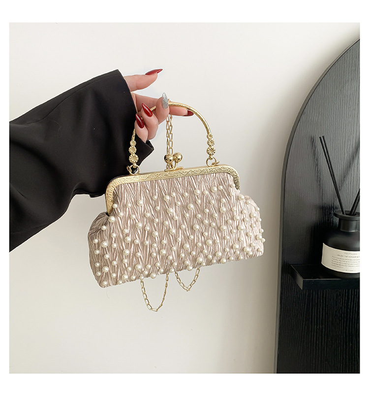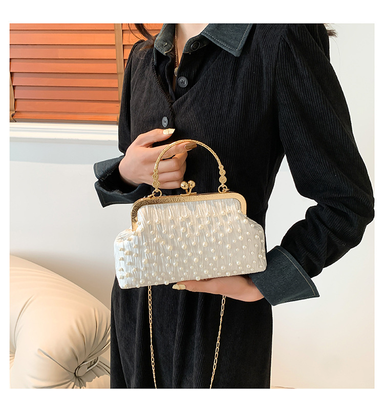 温柔时尚珍珠锁扣手提包2025春夏新款百搭ins链条单肩斜挎包韩版