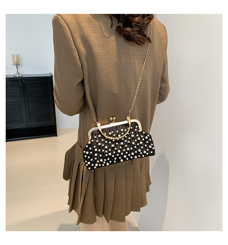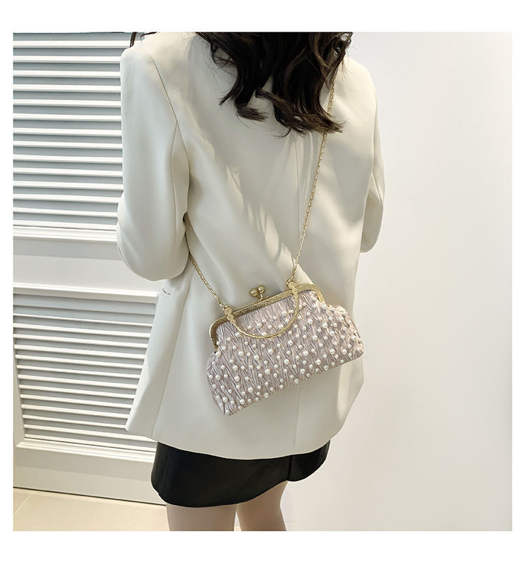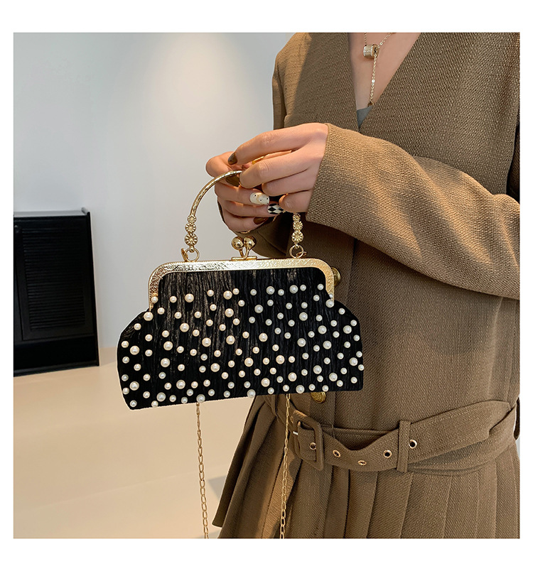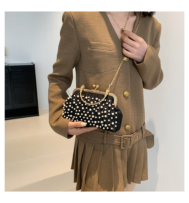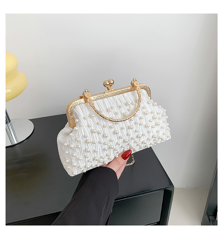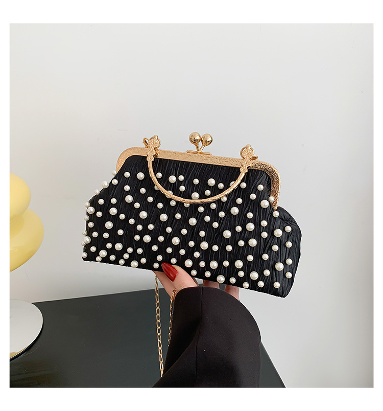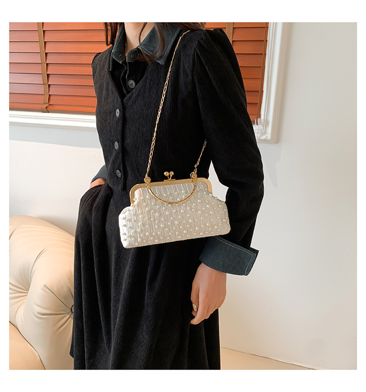 温柔时尚珍珠锁扣手提包2025春夏新款百搭ins链条单肩斜挎包韩版