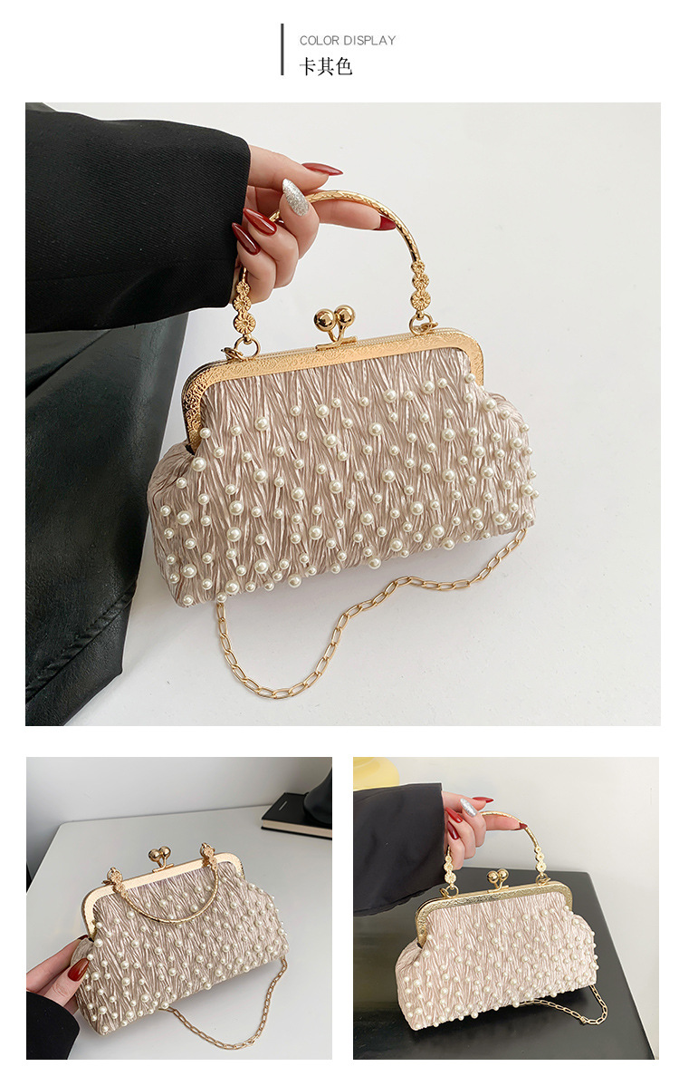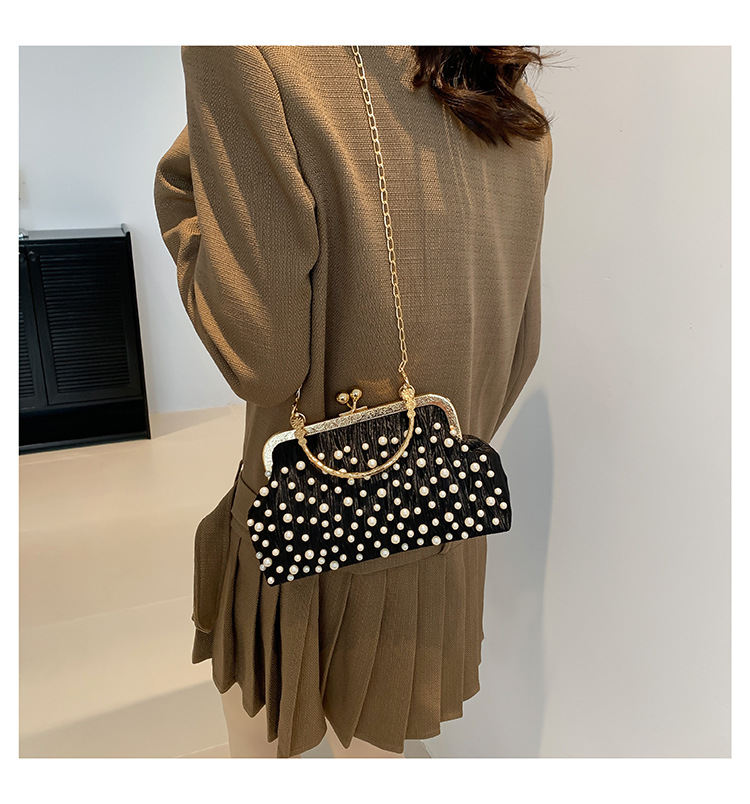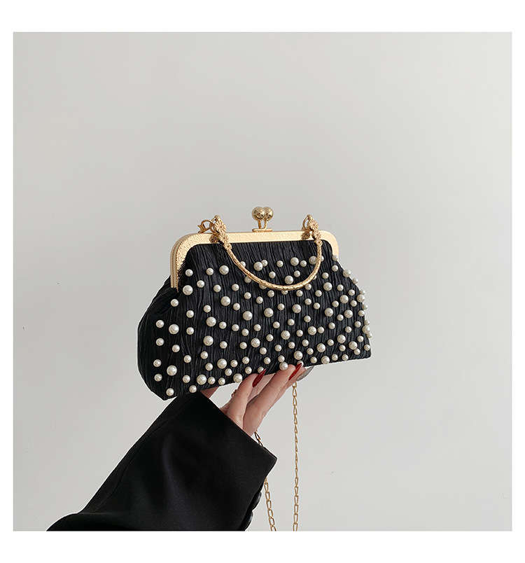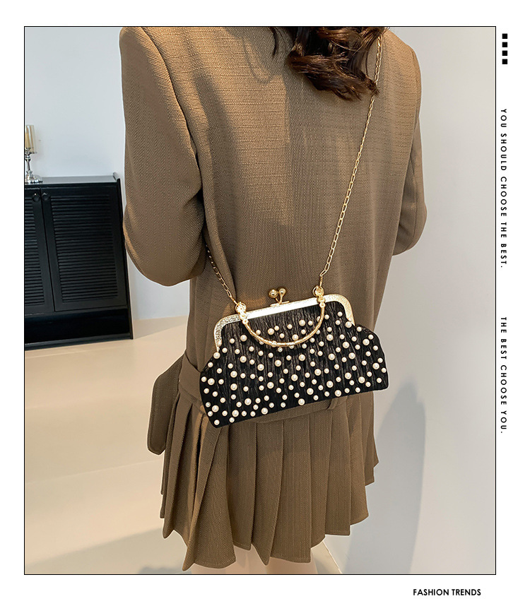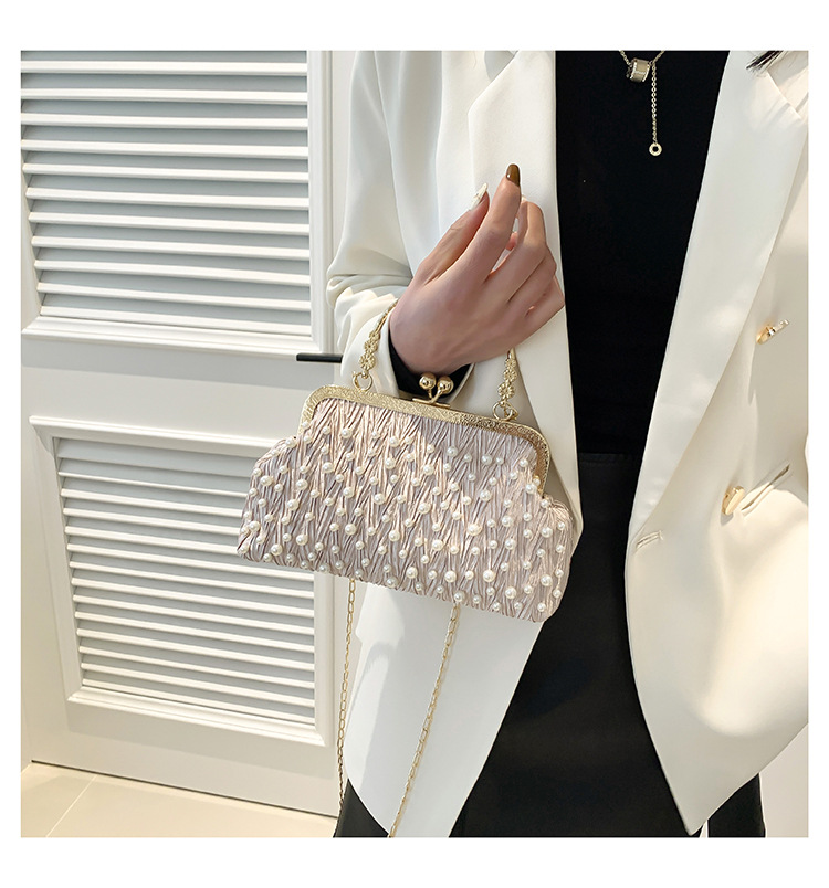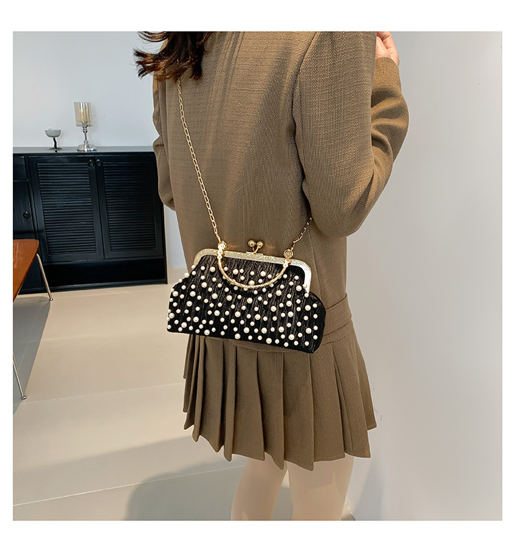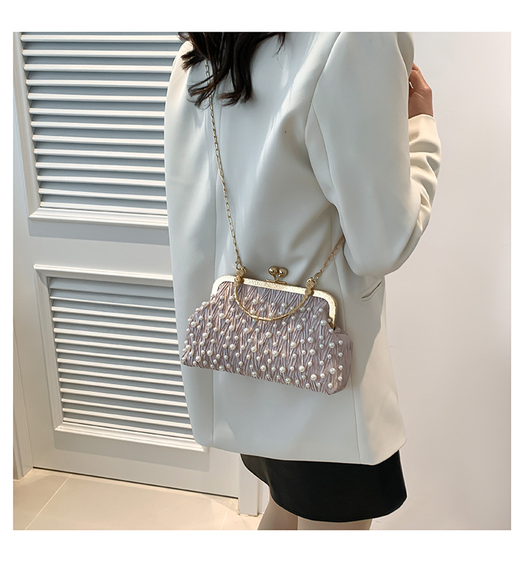 温柔时尚珍珠锁扣手提包2025春夏新款百搭ins链条单肩斜挎包韩版