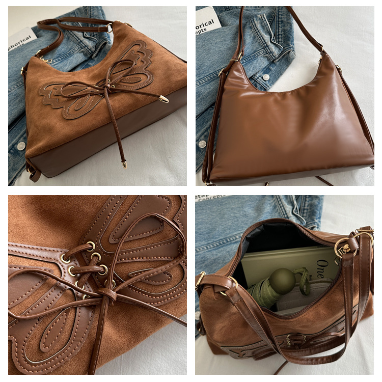 大容量蝴蝶结双肩包女2025秋冬新款复古单肩包高颜值通勤托特女包