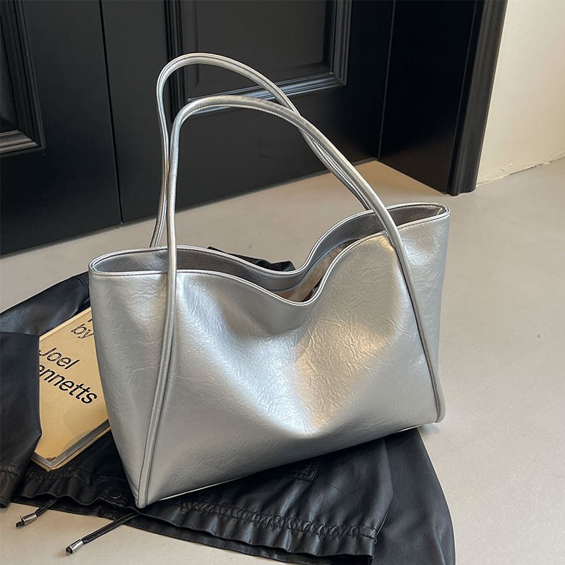 银色大容量通勤手提包包女新款感单肩夏天流行纯色托特包