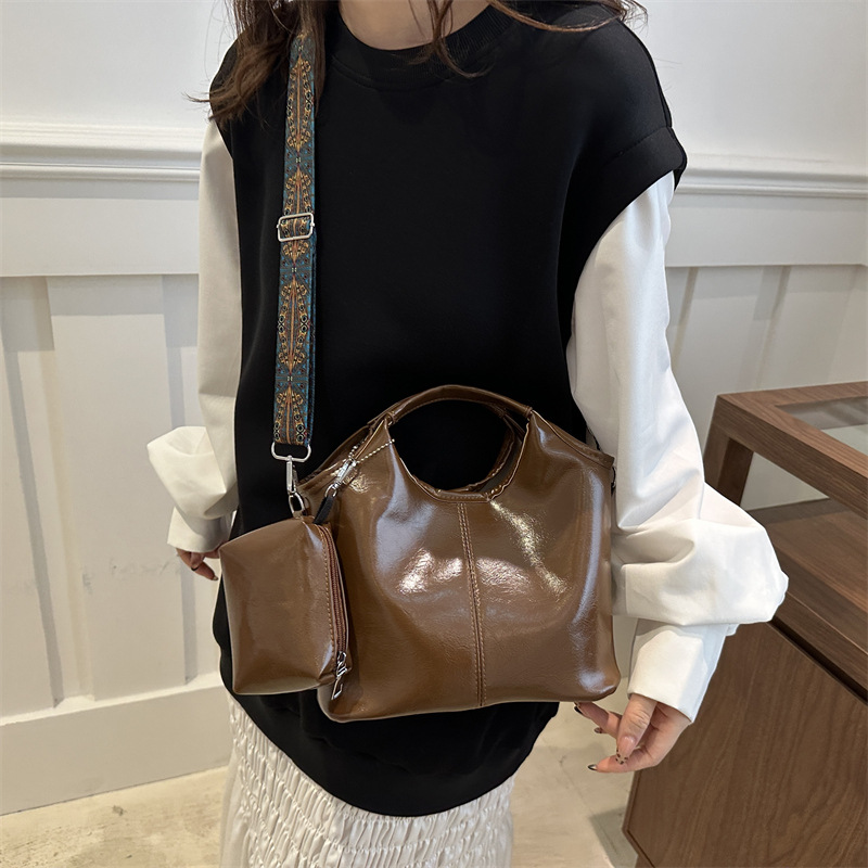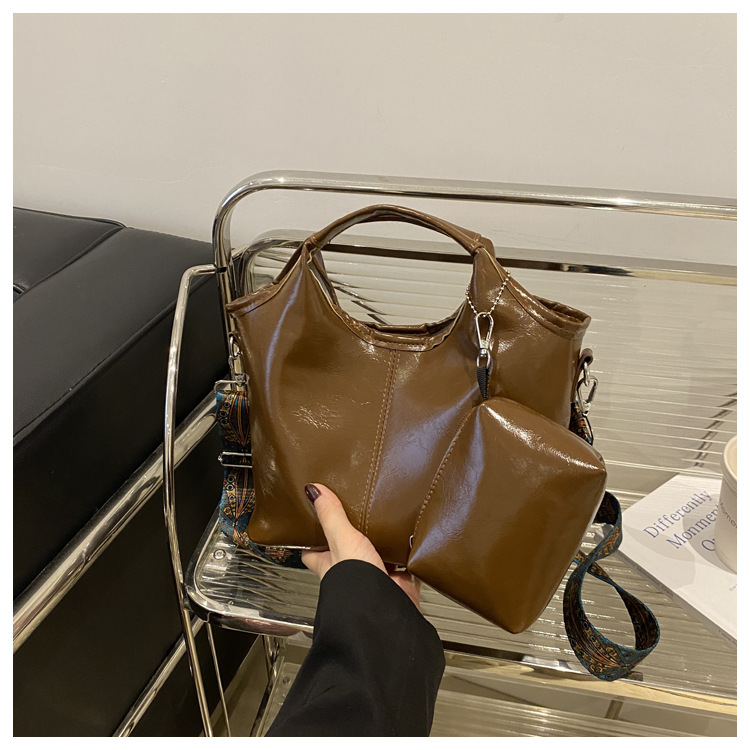 冬季新款休闲大容量子母两件套软面PU女欧美复古托特手提单肩包