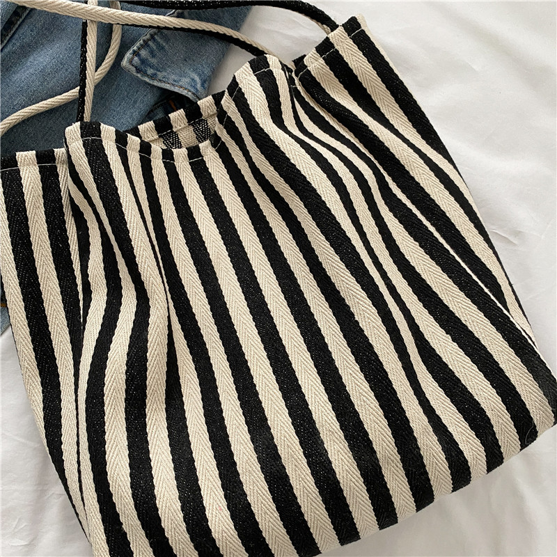 韩版复古文艺手提包简约小清新条纹单肩包休闲时尚大容量购物袋包