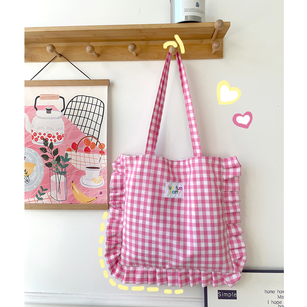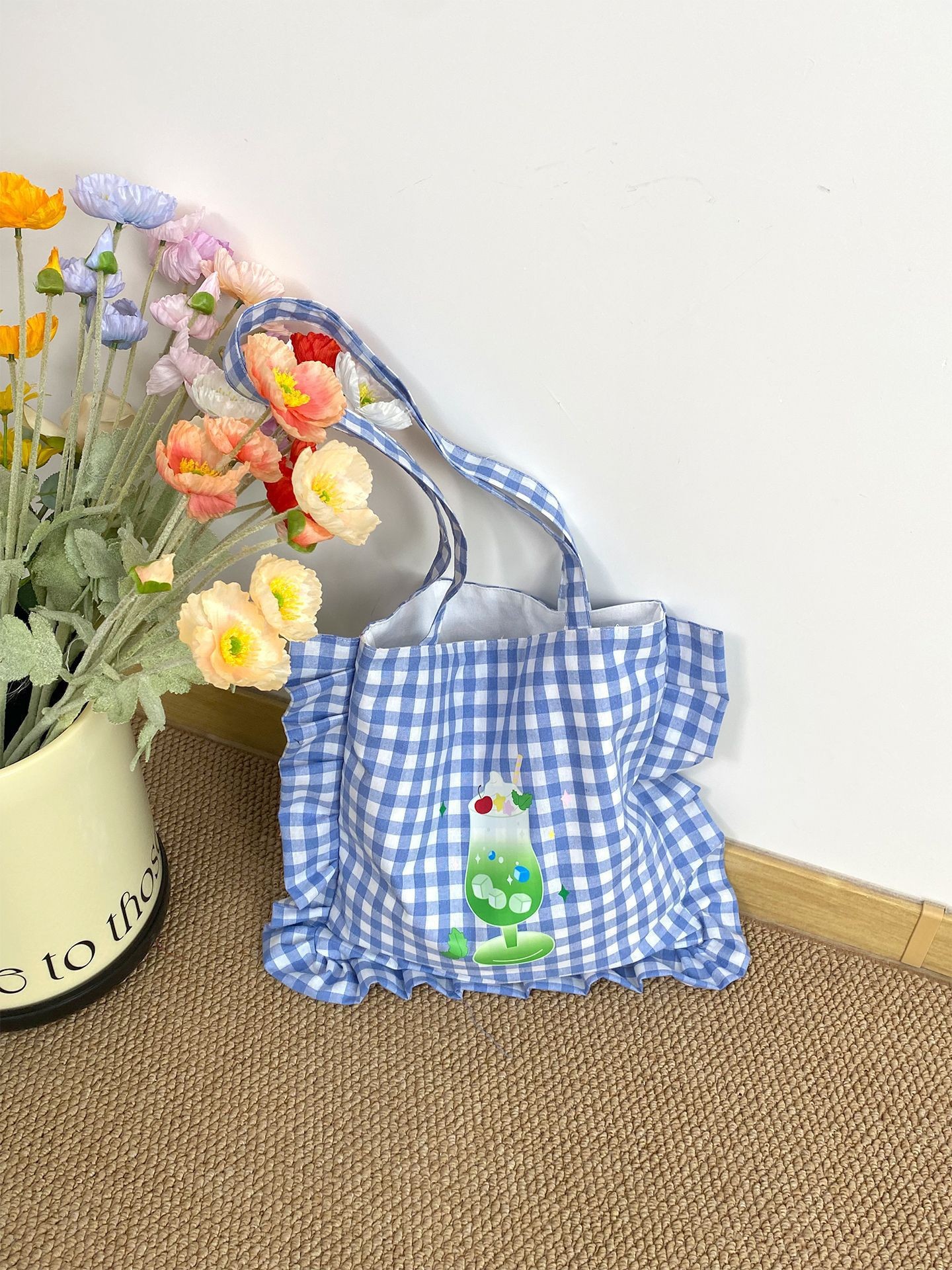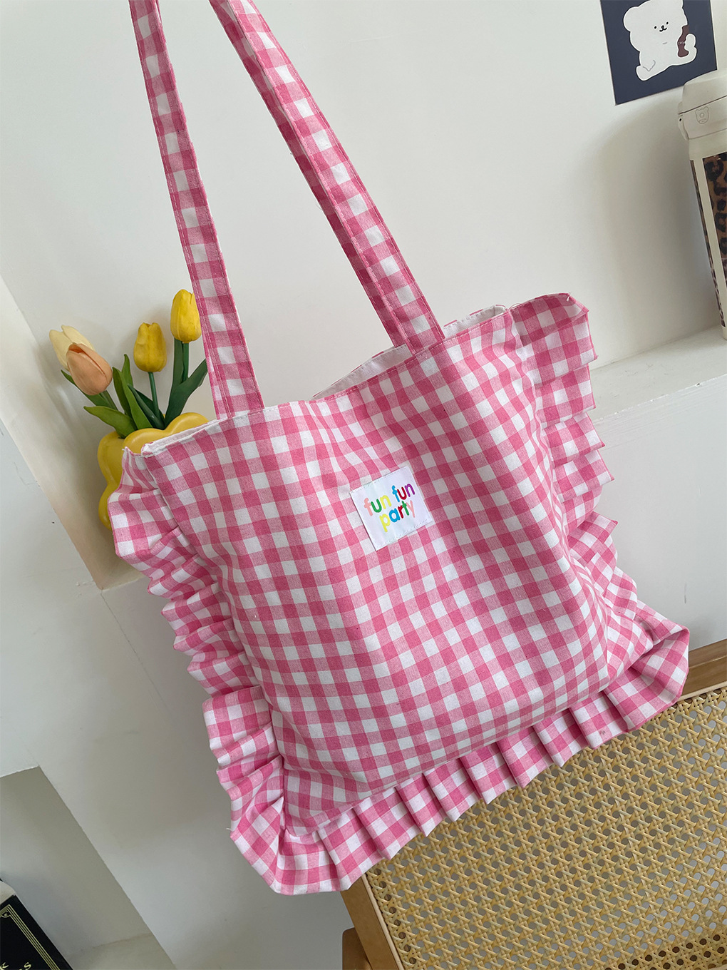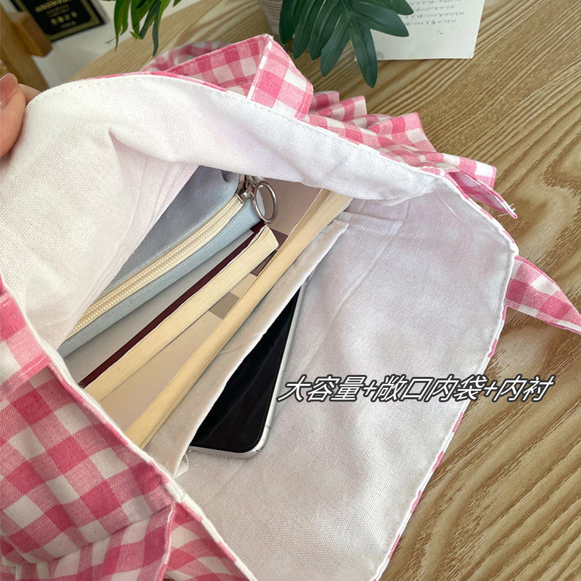 清新格子荷叶边单肩包可爱花边枕头包日常通勤托特ins韩风学生包