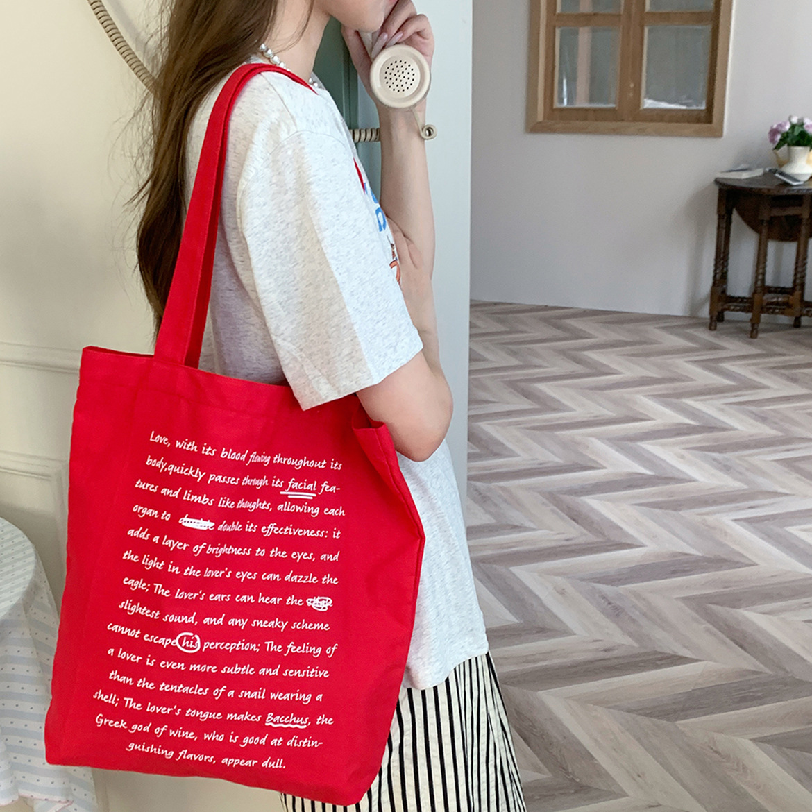 简约字母帆布包清新文艺单肩帆布袋大学生上课包通勤包大容量布袋