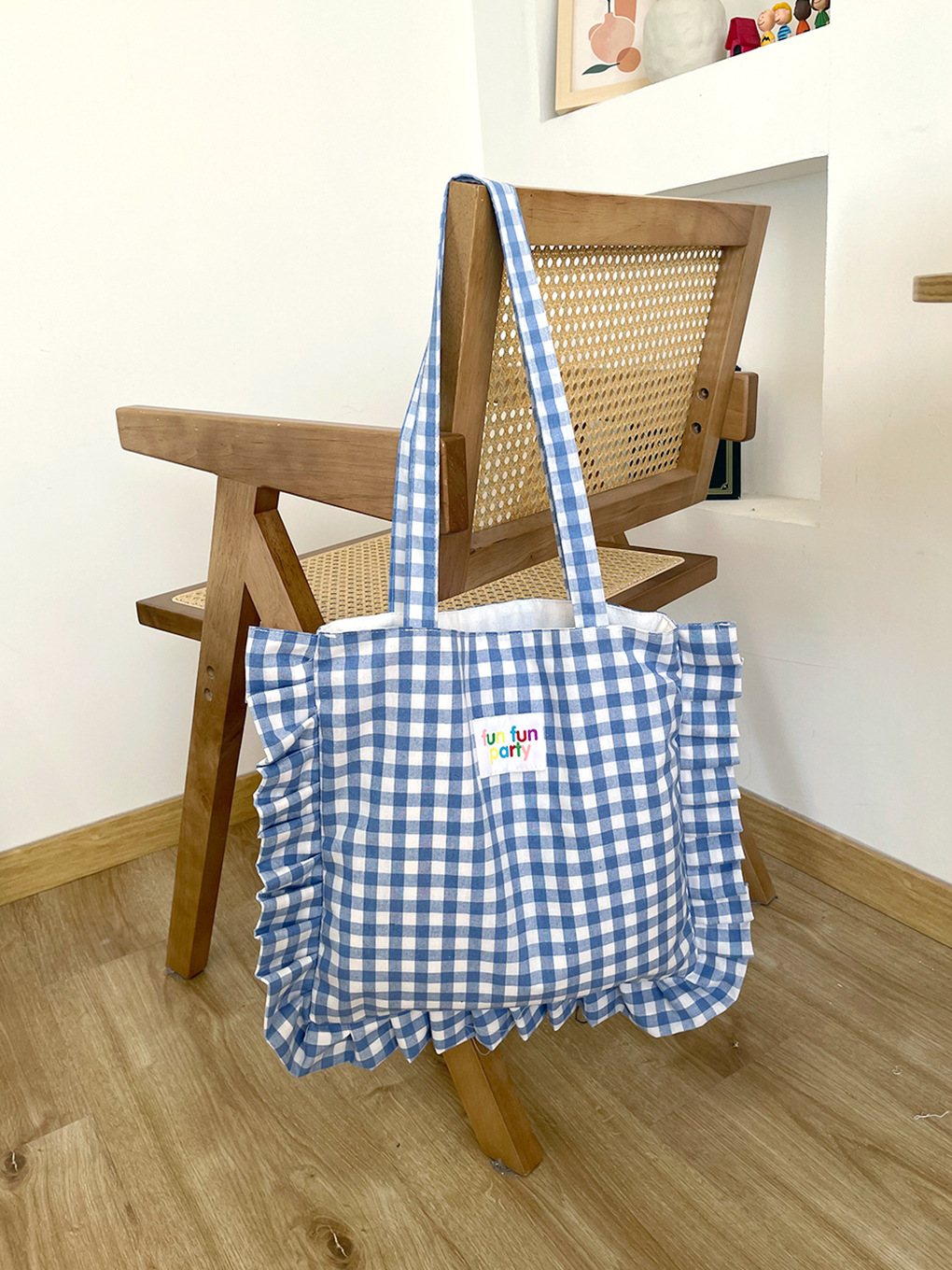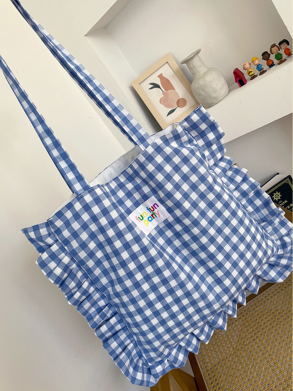 荷叶边格子单肩包-浅蓝
