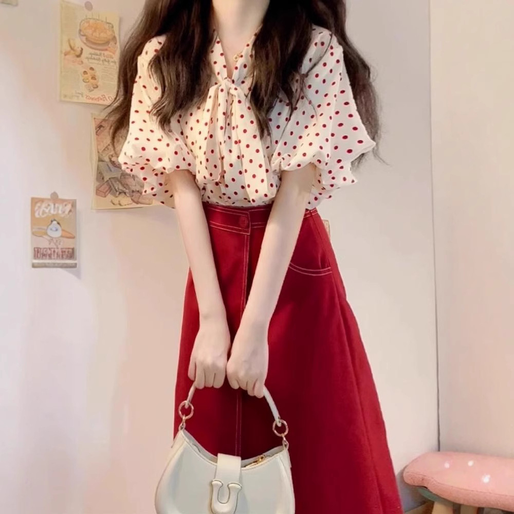 小个子衬衫连衣裙子夏季2025新款女装高级感穿搭两件套装红色长裙